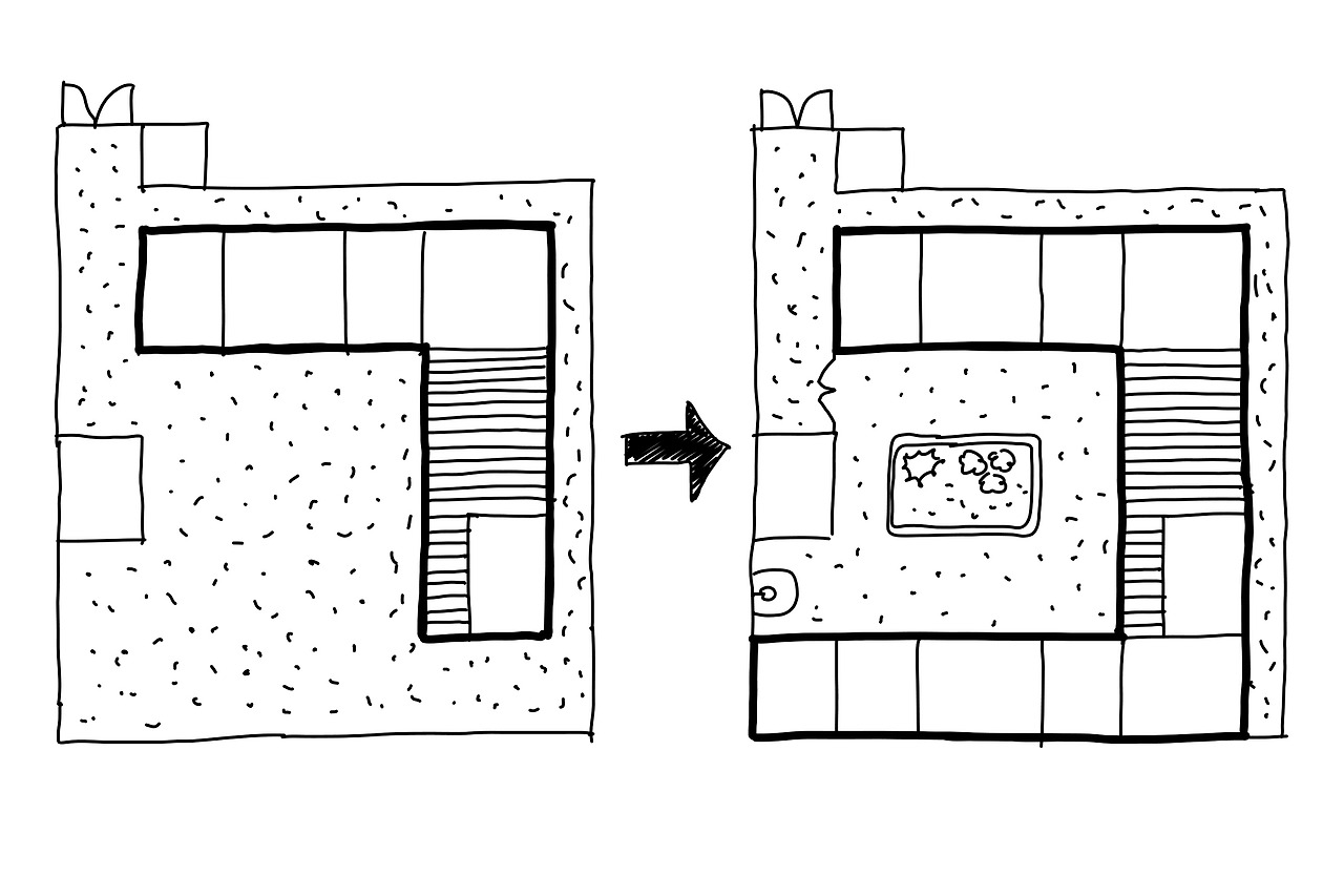 집의 모습은 A의 기억을 토대로 할 수밖에 없었다. 그가 개략적으로 그린 스케치와 기억들을 종합하여 집의 형태를 구체화해 나갈 수 있었다. 첫 번째로 어떤 집이었는지를 그려달라고 부탁했다. 메모지에 작게 평면을 어느 정도 그려주었고, 각 실의 쓰임새를 지시선을 그리시며 실명을 글자로 써주신 메모를 전달받았다.