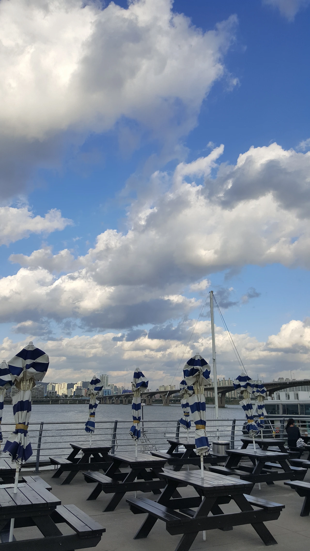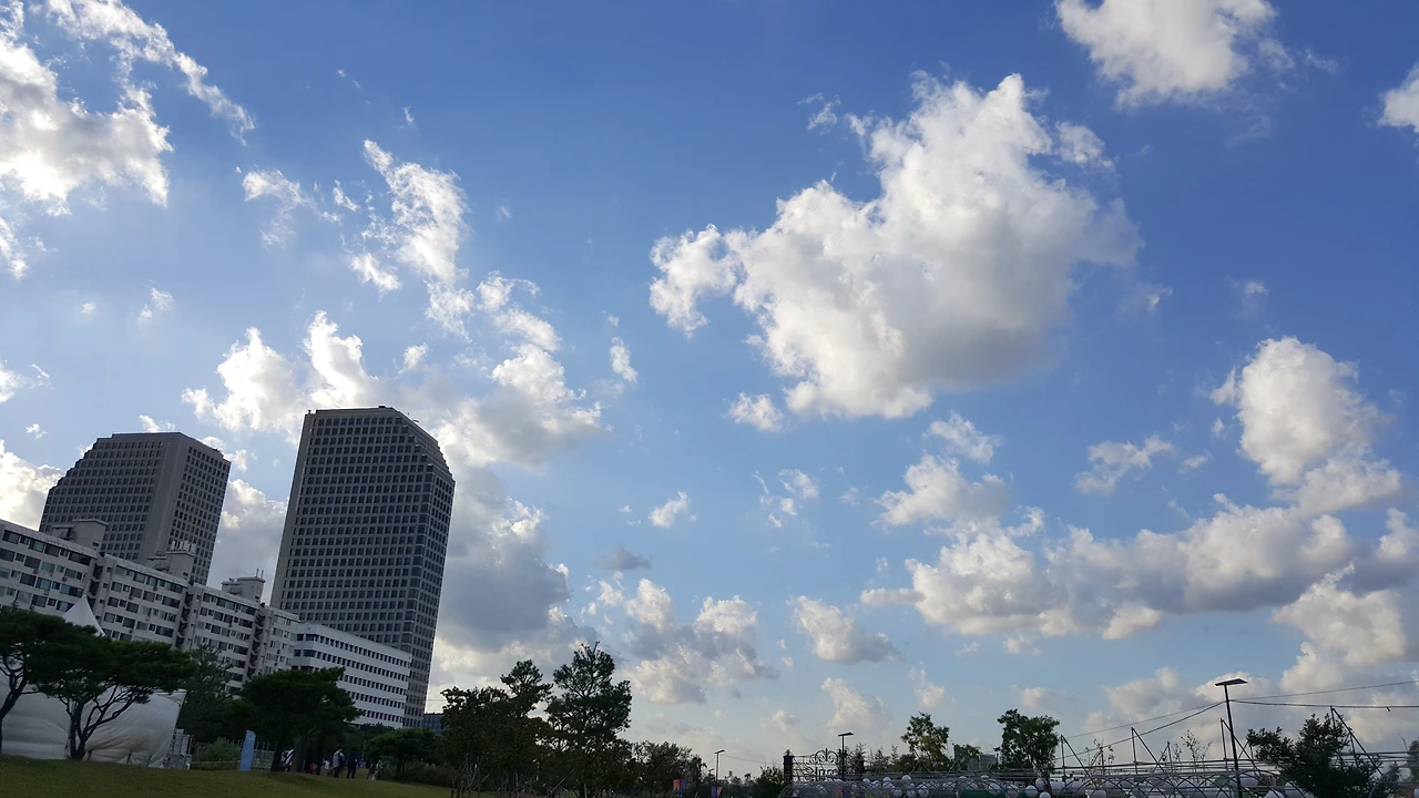 차가운 뒷끝을 품은 가을 바람에 밀리고 치이는 구름이 여름, 그리고 가을 사이의 하늘을 잘 풀어낸 것 같다.
