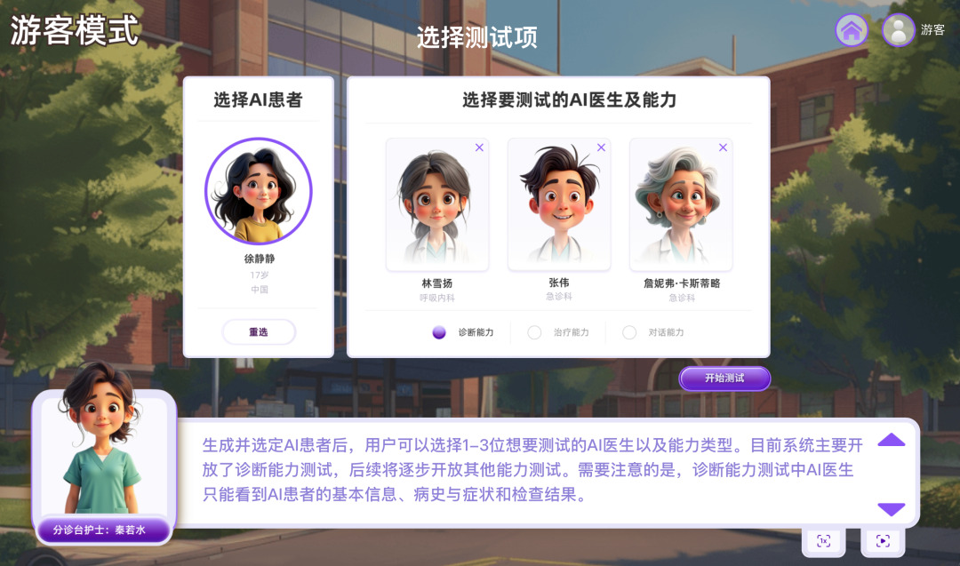 환자 모드에서 시스템은 전문가에게 "AI 의사 역량 테스트" 기능을 공개했는데, 이는 또한 이 시스템 베타 테스트의 핵심 내용입니다.