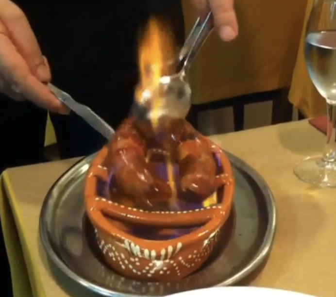 저녁으로 포르투갈 전통(?) 요리인 소시지 같은 것을 먹었다. 웨이터가 테일블로 직접 와 구워 주었다. 포르투갈 음식은 먹는 것마다 맛있었다.