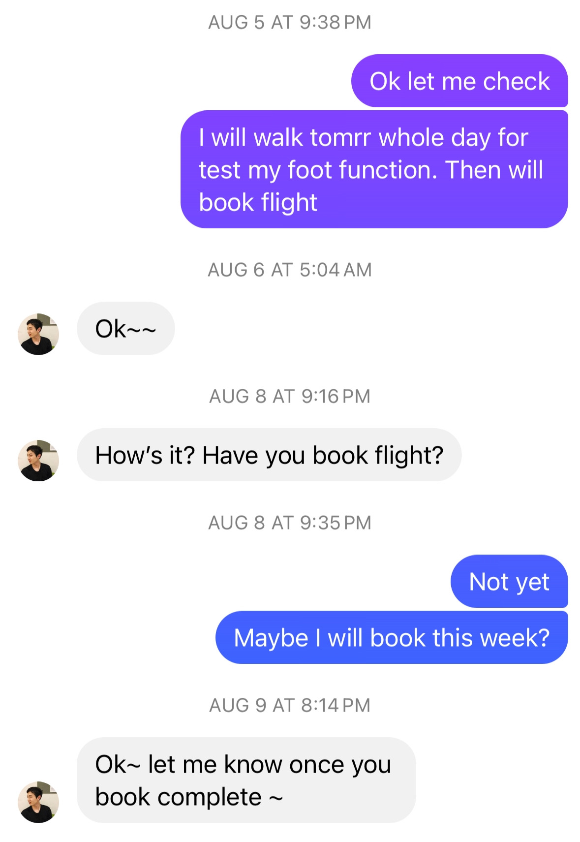 발목을 다치고 나서 처음으로 해외여행을 가려고 하니 겁이 나는 건 확실하다. 하지만, 만약 내가 그 먼 곳까지 무사히 다녀온다면 나는 내 발목 상태에 대한 신뢰가 생길 것은 확실하다. 지금까지 일부러 발목 상태를 실험하기 위해 서울 곳곳을 일부러 걸어 다니곤 하였다. 나는 내 발목이 더 괜찮았으면 좋겠다는 생각에 더 넓은 곳으로 가 실험해 보고 싶은 마음이 생겼다. 그래서 난 도쿄로 떠났다.