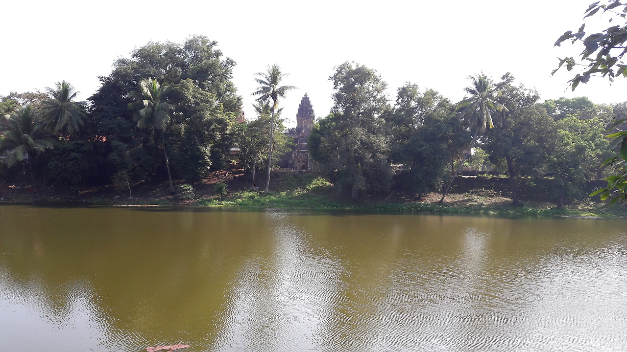 우리 마침내 바꽁에 도착했다. 바꽁은 크메르 제국의 최초 피라미드 사원으로 앙코르 와트와 같이 해자에 물이 흐르고 그 위 돌다리 건너니 바꽁의 사원이 정면으로 눈에 들어왔다.