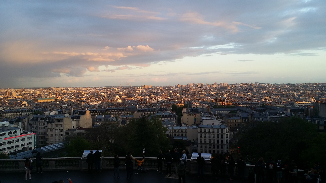 석양이 지는 몽마르트르 언덕! 모두들 금빛으로 물든 파리 시내를 보면서 감탄을 자아냈다. 정면에는 조금 한 야산조차도 없는 지평선 같은 파리 시내...