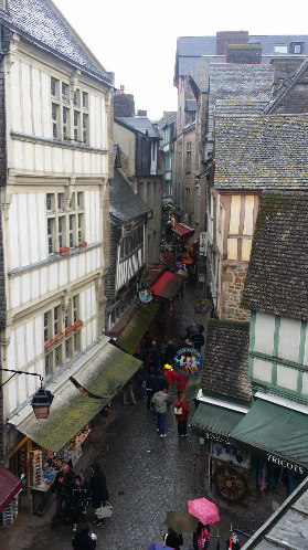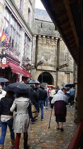정오가 되지 않았는 데도 흐린 하늘에 몽셀미셸은 초저녁 고즈넉한 분위기를 연출하고 있었다. 입구에 들어가 보니 이미 수많은 사람들이 커피와 음료를 먹고 신나게 이야기하는 모습들이 보였다.