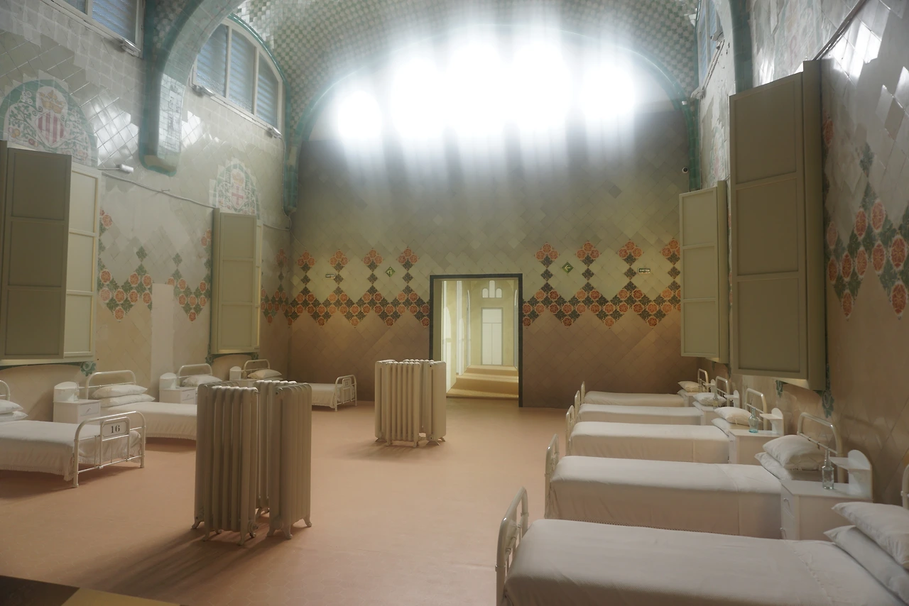 산트 라파엘 파빌리온, 10개의 침상이 가지런히 정리되어 있다.