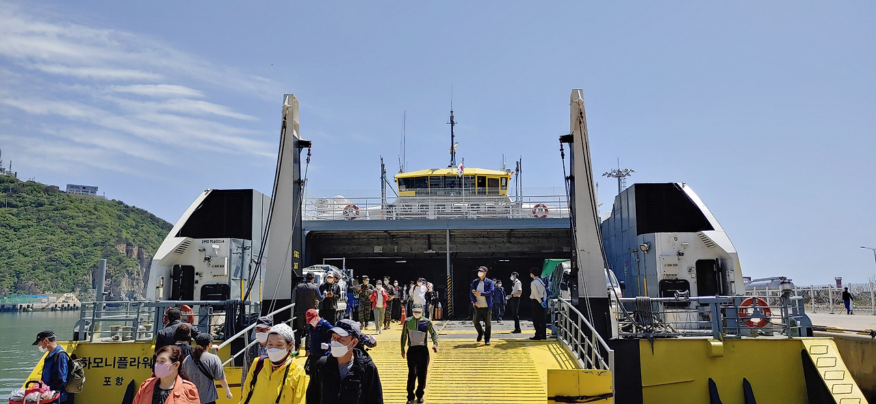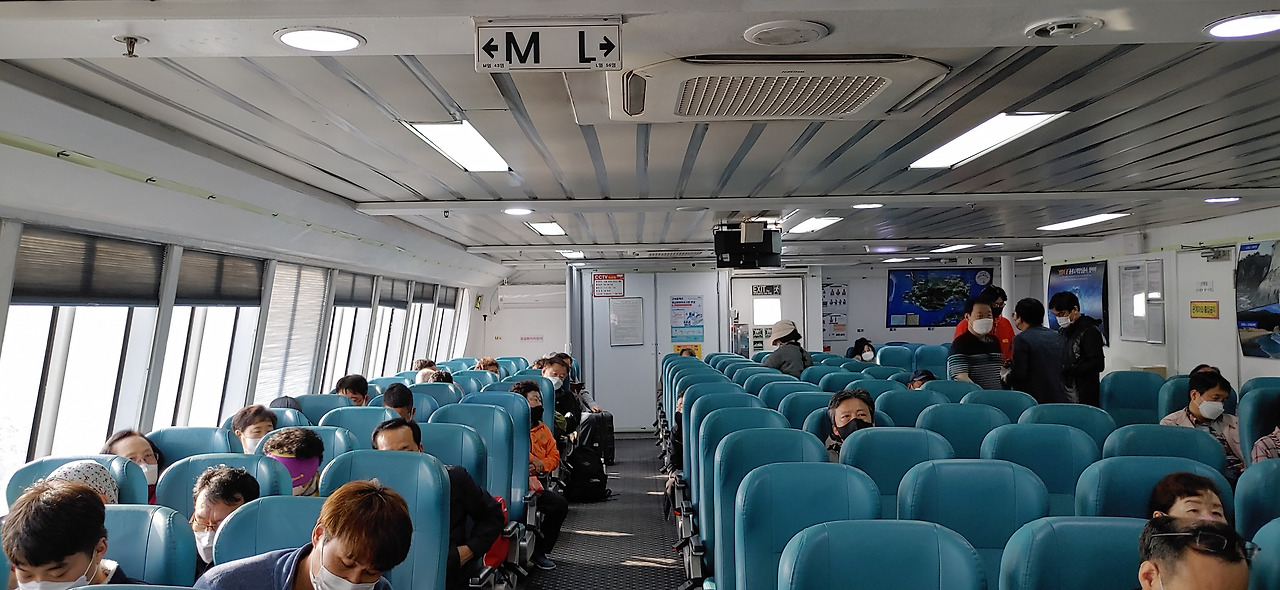 배안에는 해병대 인원들이 많이 승선했는데 좌석에 앉아있는 모습도 질서 있게 보였다. "역시 해병대"라고 혼잣말을 하면서 지정된 좌석에 앉았다. 평일이라서 그런지 일반 여행객들은 많지 않다.