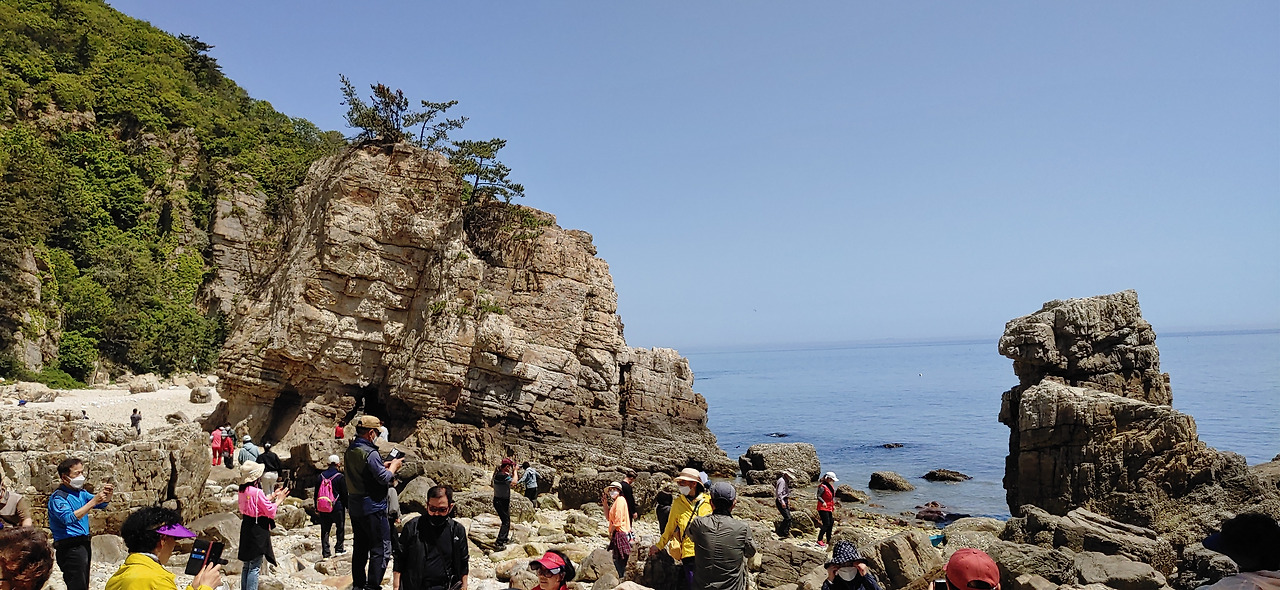 실제로 해식동굴과 해식 아치 사이로 보이는 규암 절벽과 멋진 암석들은 또 하나의 절경이다.