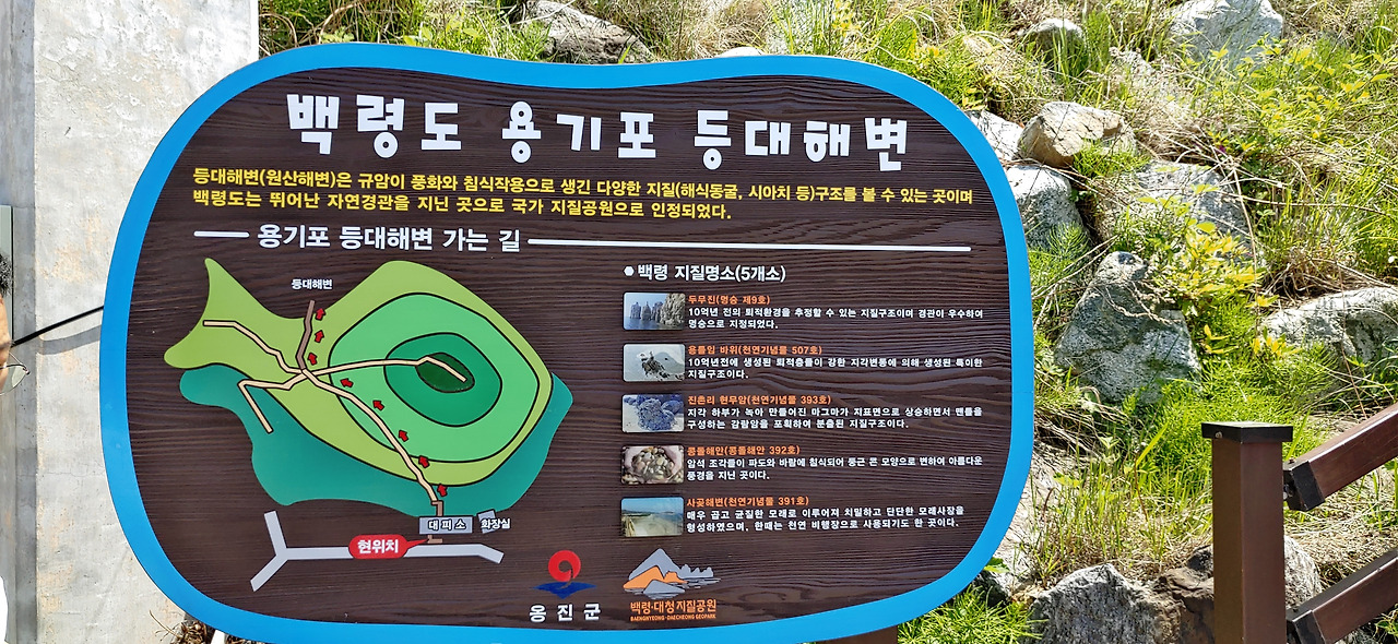 용기포 등대 해안은 과거 백령도에서 불을 밝히던 등대에 올라 갈 수 있는 해안으로 6.25 전쟁 때에는 피난장소로도 사용되었다고 한다. 등대해변(원산 해변)은 규암이 풍화와 침식작용으로 생긴 다양한 지질(해식동굴, 사이치 등) 구조를 볼 수 있다고 한다(안내판 문구 인용).