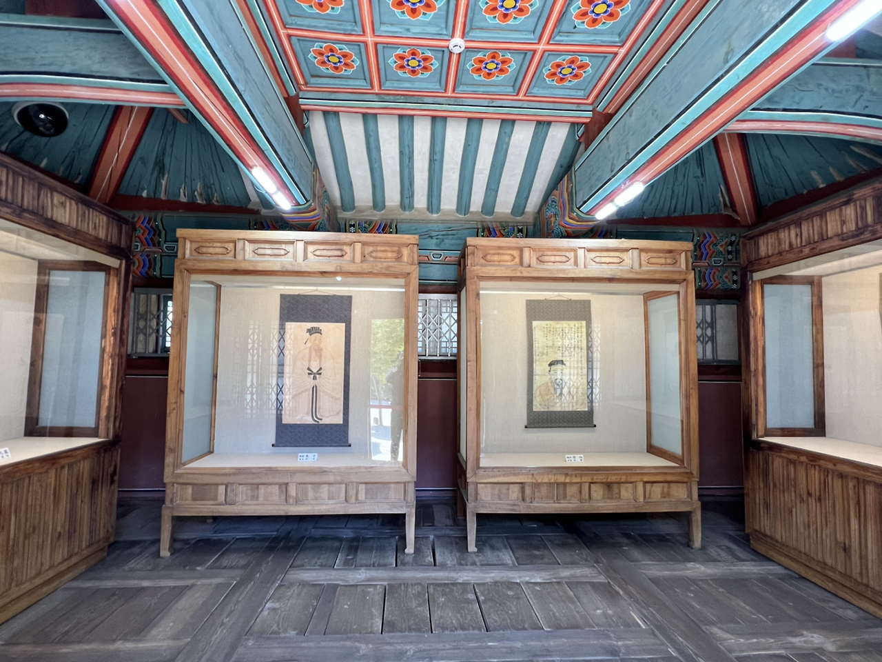 현재 건물 내부의 중앙 좌측에는 주자학의 시조인 주자의 영정, 우측에는 우리나라 주자학의 선구자인 안향의 영정(국보 제111호), 왼쪽에는 소수서원을 세운 주세붕의 영정(보물 제717호), 한음 이덕형의 영정, 오른쪽에는 청백리의 표상인 이원익의 영정, 조선 후기 사상계를 이끌었던 허목의 영정이 있다. 원본은 소수박물관에 있다(소수서원 안내문 인용).
