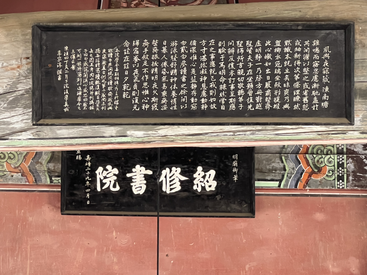 강학당에 안을 보면 명종의 친필(명묘어필)인 '소수서원'이라는 사액 현판 글씨가 보인다.