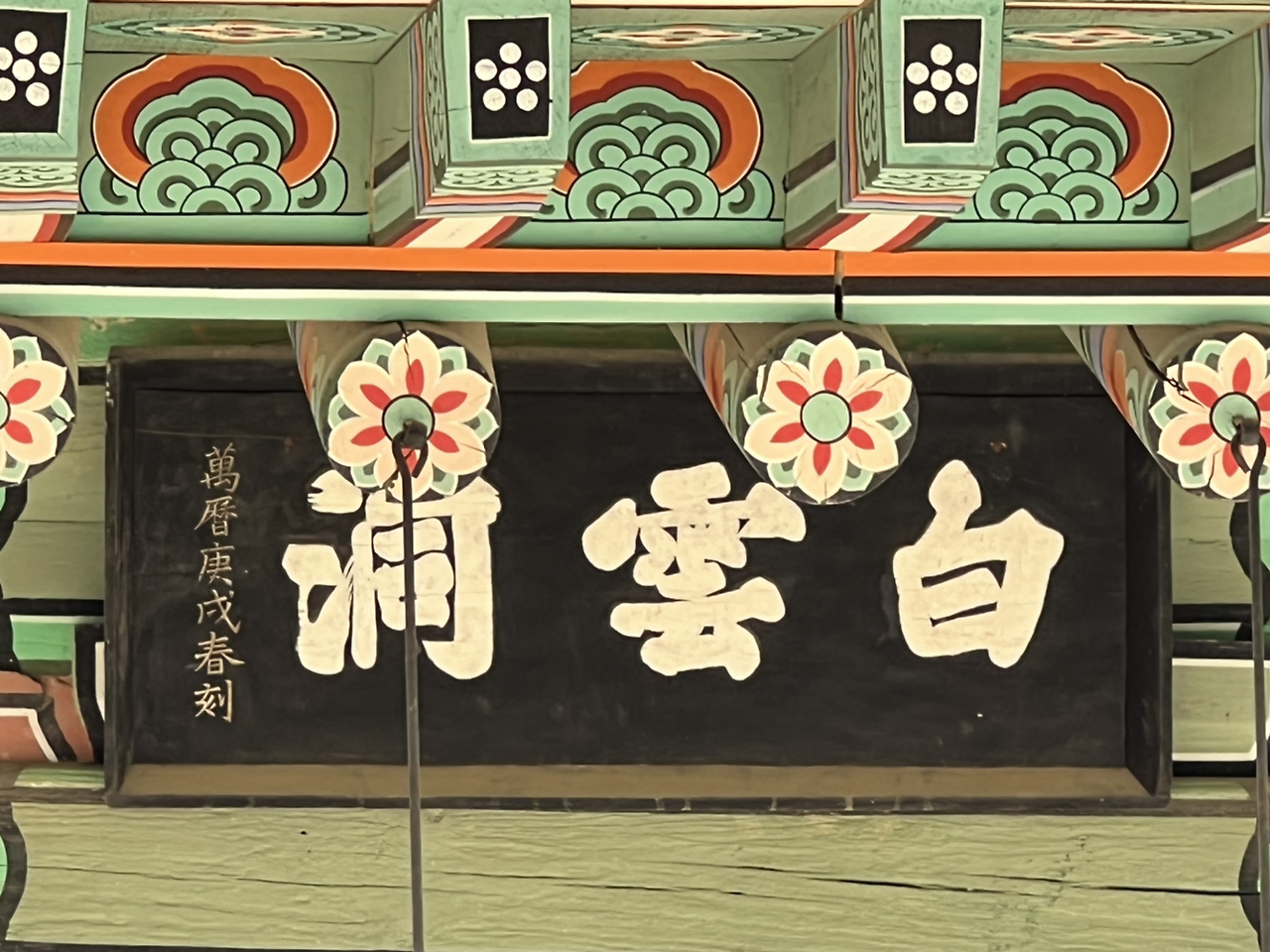 서원 입구를 들어가면 바로 강학당이 보이는 데 "백운동"현판이 정면으로 보인다.