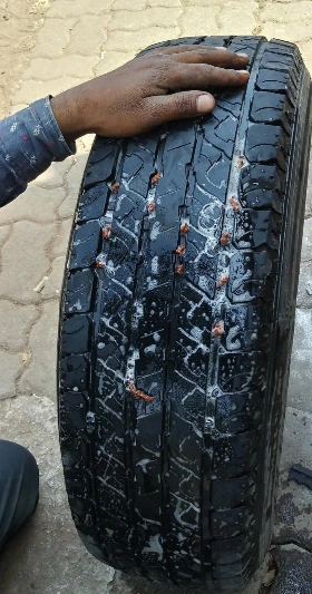 타이어 가게 앞 의자에 앉아있던 주인과 눈이 마주쳤다. 그러자 그가 걸어와 타이어를 살폈고 이내 도구를 가지고 와서 타이어의 상태를 확인하기 시작했다. 비누 거품을 뚫고 나오는 거품은 하나, 둘, 셋... 아홉... 열 셋... 열 다섯! 일정한 간격을 두고 뚫려 있는 구멍들을 그는 메우기 시작했다.