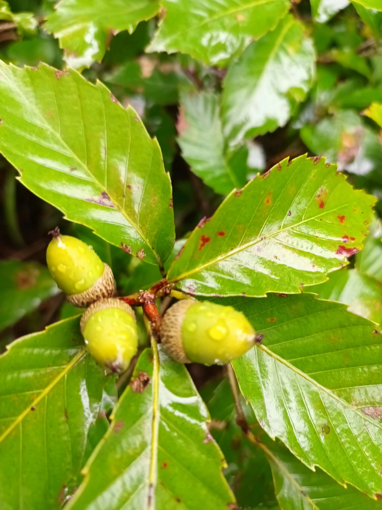 그런데 제일 먼저 들른 화장실에서 만난 붉은 발톱게가 그 고요를 깨뜨렸다. 종종종종 쓰레기통 사이로 숨더니 달아나 버렸다. 하지만 그것은 시작에 불과했다. 태양전망대에 올랐다 내려와 달맞이공원을 지나 탐방로를 걸으니 붉은 발톱게 천지였다. 처음에는 알아보지 못했다. 바닥에 떨어진 나뭇잎이나 비에 젖은 땅과 함께 보호색을 입어버린 몸통과 다리 때문에. 상아색 집게발과 선홍빛 집게다리가 아니었더라면 우리 발자국 소리에 묻혀 그들 나름의 아비규환인 발자국소리를 듣지 못했을 것이다. 멀리 두었던 시선이 어쩌다 바닥을 향했더니 한 마리가 보였다. 곧이어 여기저기서 달려와 숲 속 구멍 속으로 쏙 들어가는 앙증맞은 뒷모습이 보였다. 그제야 게들의 작은 발소리가 숲 속을 꽉 채우고 있음을 알았다. 맹감나무와 도토리나무사이로 바스락 종종종 내달리며 갈색 나뭇잎사이로 붉은 집게발들이 바지런을 떨고 있다. 산책에 나선 우리는 졸지에 침입자가 되었다. 우리가 도둑이었다. 주인장인 그들의 구역에 비가 옴에도 불구하고 우산을 쓴 채 방문한 침입자, 붉은 발톱게 발자국 소리는 이미 적색경보 사이렌 소리가 된 듯했다.