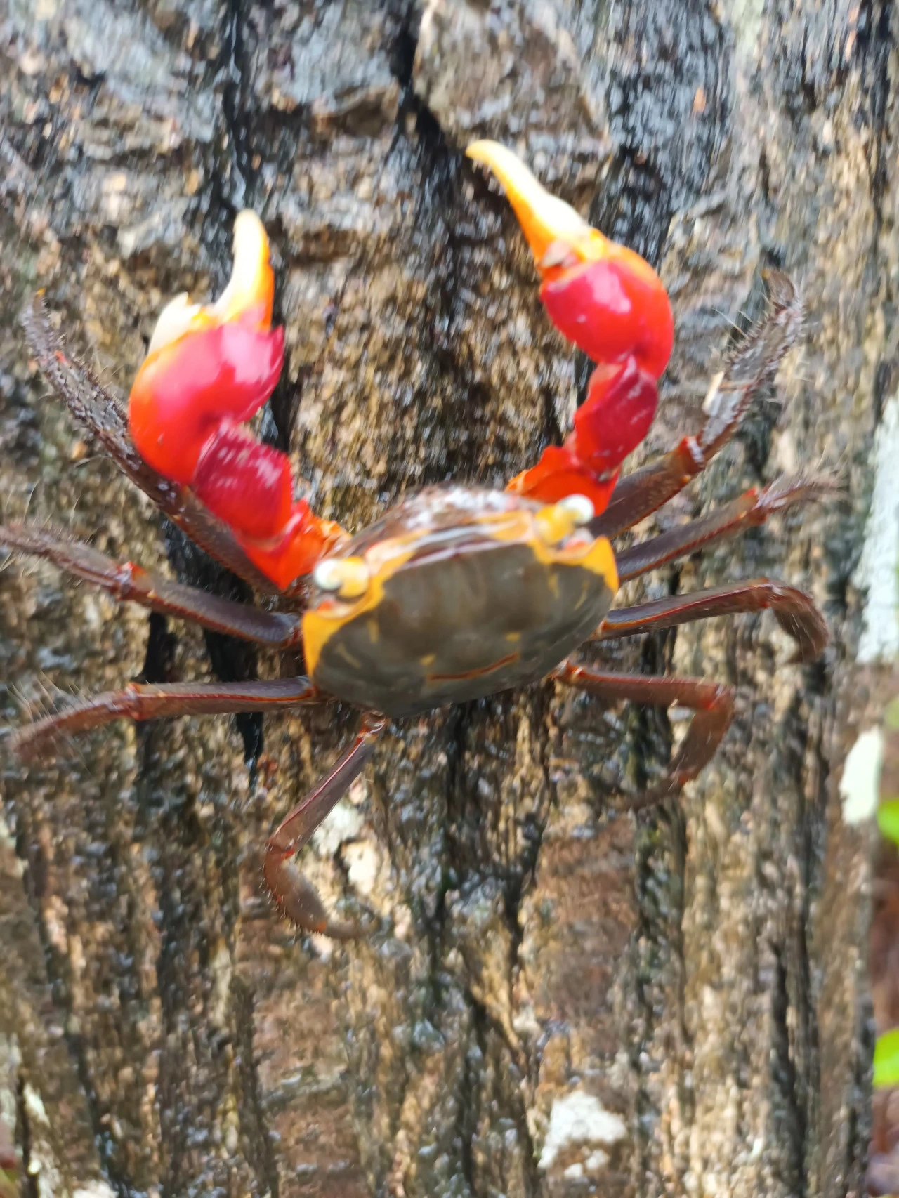 우리는 '여기도 있네, 저기도 있네!'를 외치며 사진을 찍었다. 어떤 녀석은 나무 위에 올랐다. 산골에서 자란 나는 나무에 오르는 게는 처음이었다. 신기해서 더 가까이 다가가 찍는데 무척이나 빠르다. 사진 몇 장 찍고 나서 모른 척 걸었다. 긴 관심은 상대에게 불편을 줄 수도 있다. 어느새 게들의 긴장도 풀린 듯 다시 고요해졌다. 제 갈길 가는 것이 서로에게 편안함을 준다.