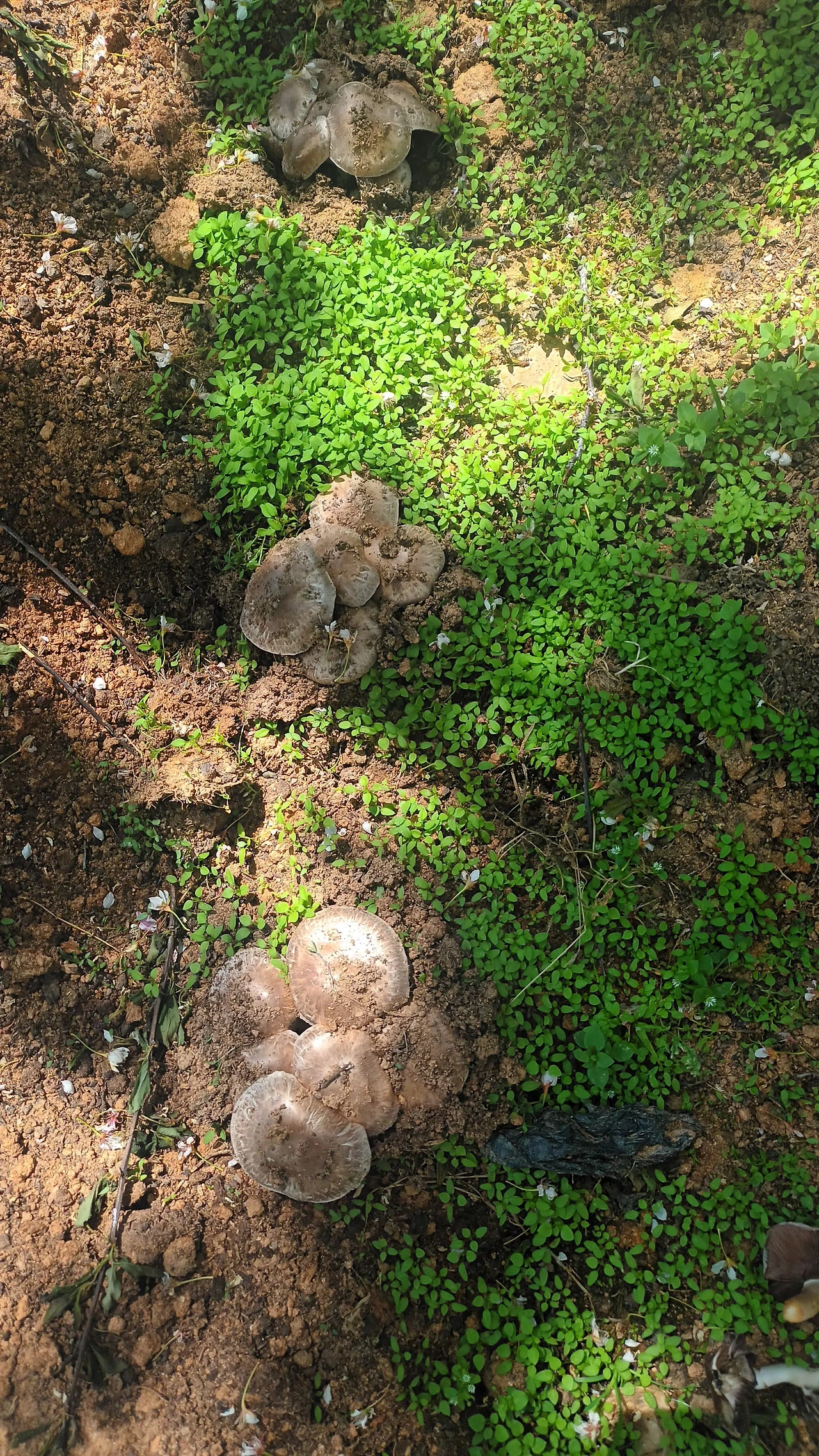 한 주 전쯤 버섯 한송이 발견했었다. 그때만 해도 그럴 수도 있겠다 싶었다. 자두나무 밑동에서 가끔 영지버섯 한 개 정도 보았기 때문에 별다른 의구심은 들지 않았었다.