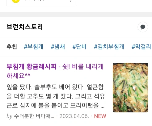 전날 밤 고심 끝에 올린 글도 아니었다. 비도 오고 일도 많지 않아 한가한 틈을 타 난로 앞에서 어젯밤 쓰다가 저장된 글 중 하나를 수정을 거쳐 오전 11시쯤 올린 것이었다. 무엇이 이글 조회수를 올렸을까? 찾아보니 다음과 구글 포털사이트에 '부침개 황금레시피'가 노출되어 있었다. 그렇다 누군가의 선택에 의해 내 글은 포털에 올랐고 이 글을 쓰고 있는 지금도 누군가의 클릭으로 6만을 넘어서고 있다.