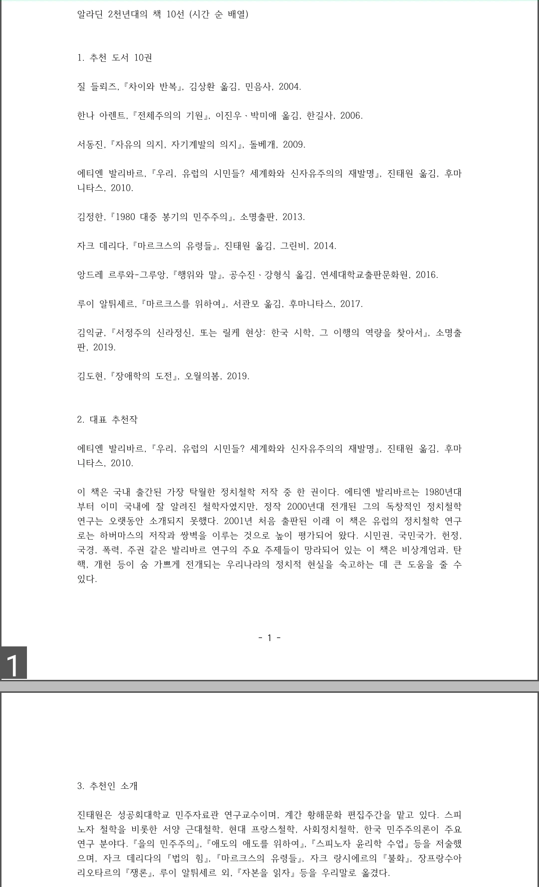 2000년대의 10권의 책 철학자 진태원의 추천도서