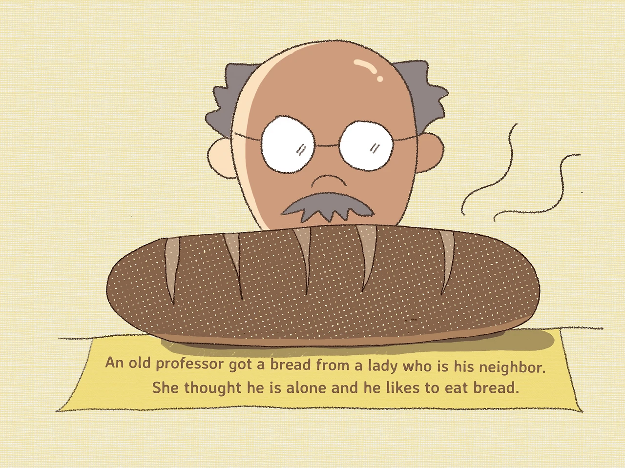 한 나이 든 교수가 이웃집에 사는 한 여자로부터 따끈한 빵을 하나를 받았습니다. 이웃집에 사는 그 여자는 그 교수님이 혼자이고 빵을 좋아한다는 것을 알았습니다.