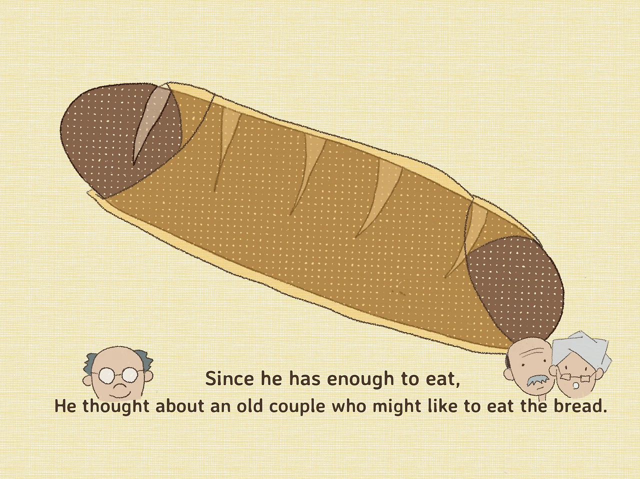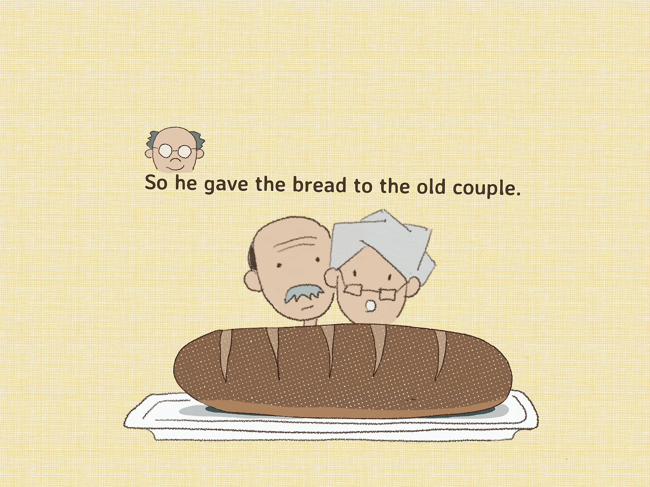 그래서 그 노부부는 친구에게 이 빵을 전해주었습니다.