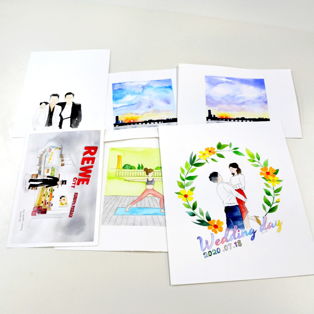 ©기이해그림 제목 왼쪽부터: 송중기&양경원, 노들섬방향 한강대교의 노을 vol. 1, 2, 독일의 REWE markt, 노들섬의 아침, Wedding day