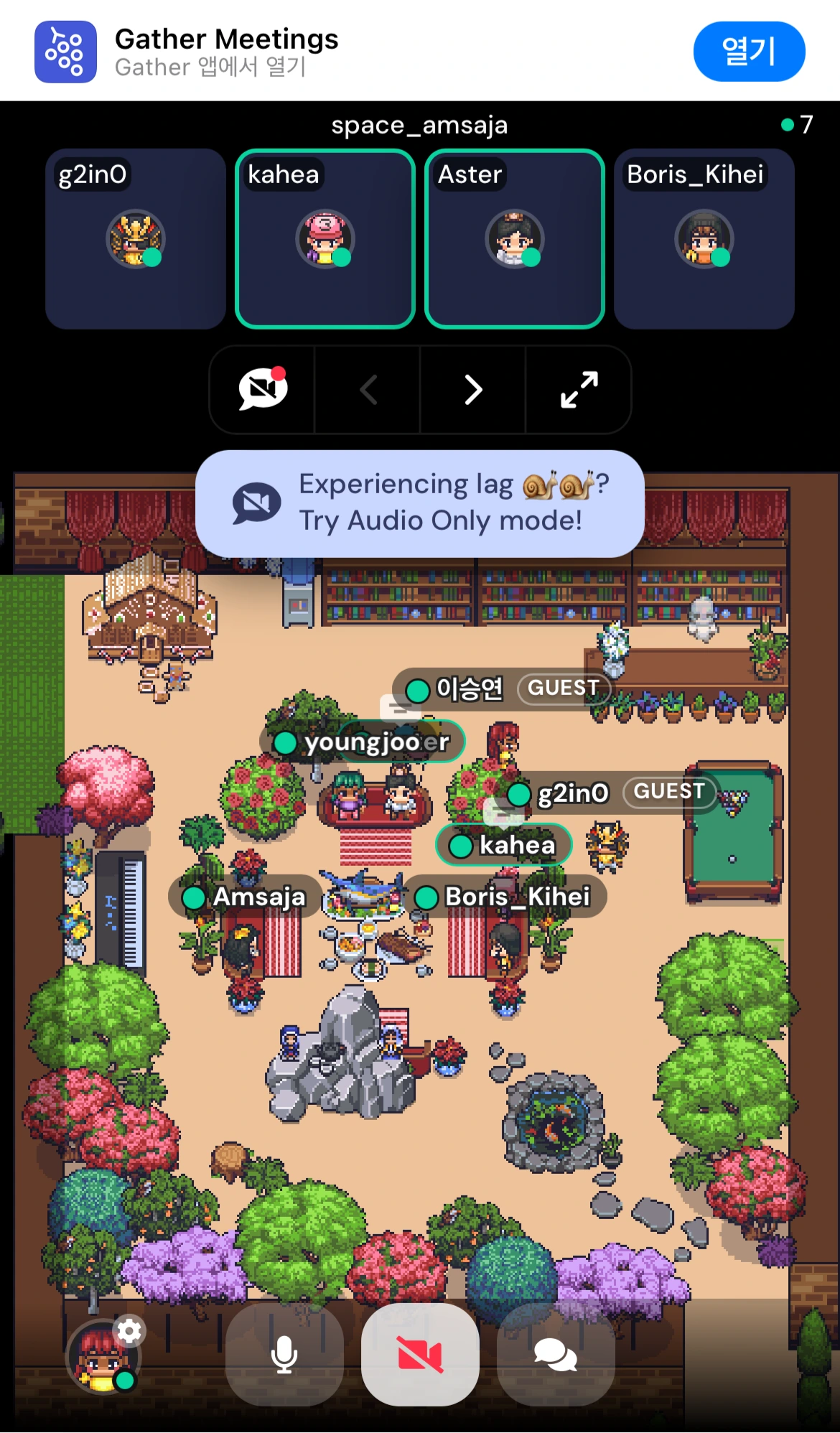 처음에는 여러 온라인 미팅 플랫폼을 전전하다가 그나마 안정적인 게더타운으로 정착했지요. 살짝 예쁘지 않은 싸이월드의 확장판 같은 느낌이랄까....