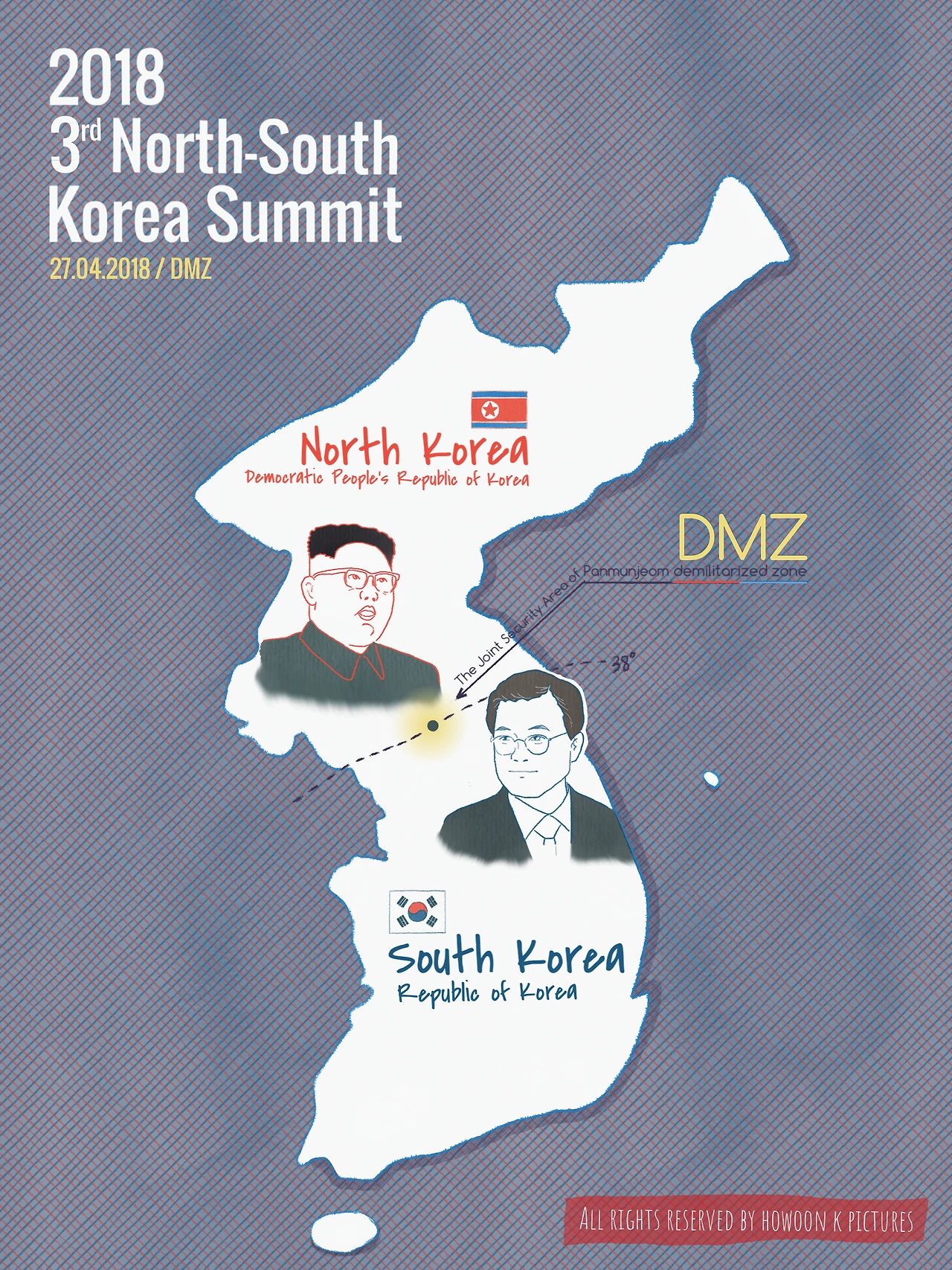 아직도 한국이 어디에 있는지 모르는 외국 친구들이 있다면 이 포스터라도 알려주세요. 우리는 이 평화 협정에 대해 조금 더 살펴봐야 하겠지만 현재까지는 이번에 개최된 정상회담이 평화적으로 이뤄졌다고 느껴집니다. 이 계기로 어쩌면 한국의 국력이 조금 더 강해질 수 있을지 살짝 기대해 봐도 될까요?