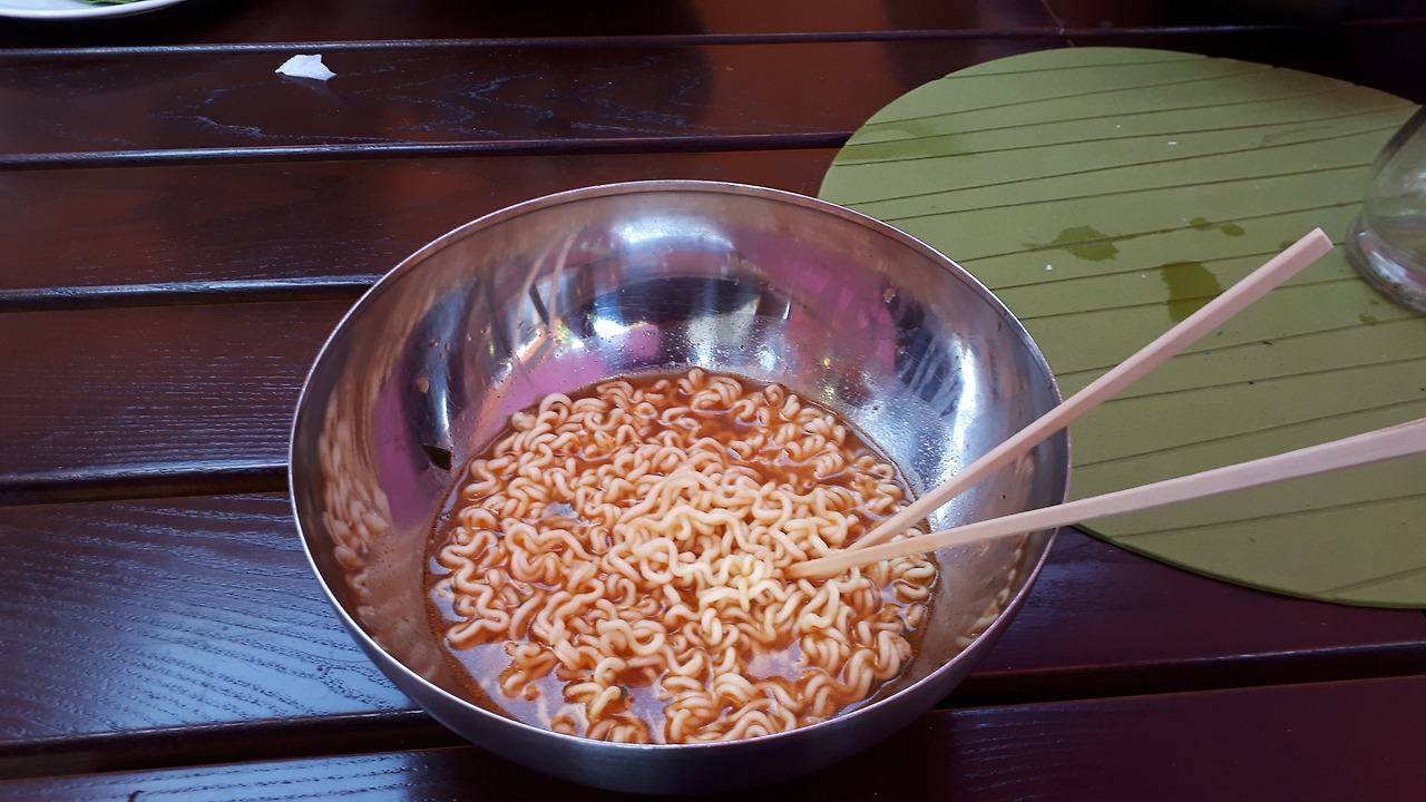 라면과 햇반, 통조림 반찬, 그리고 간식으로 빅 요거트!