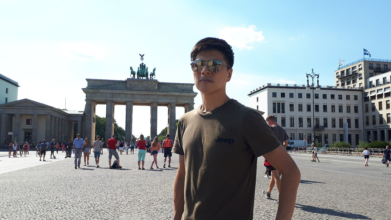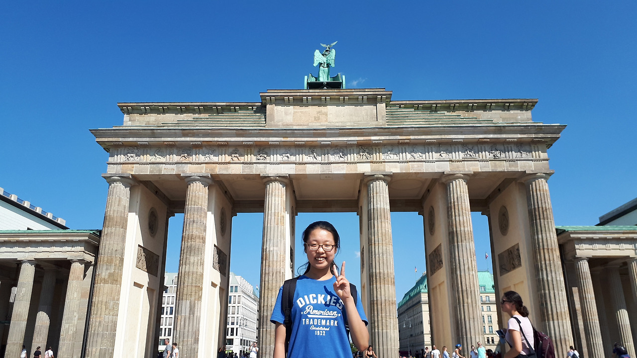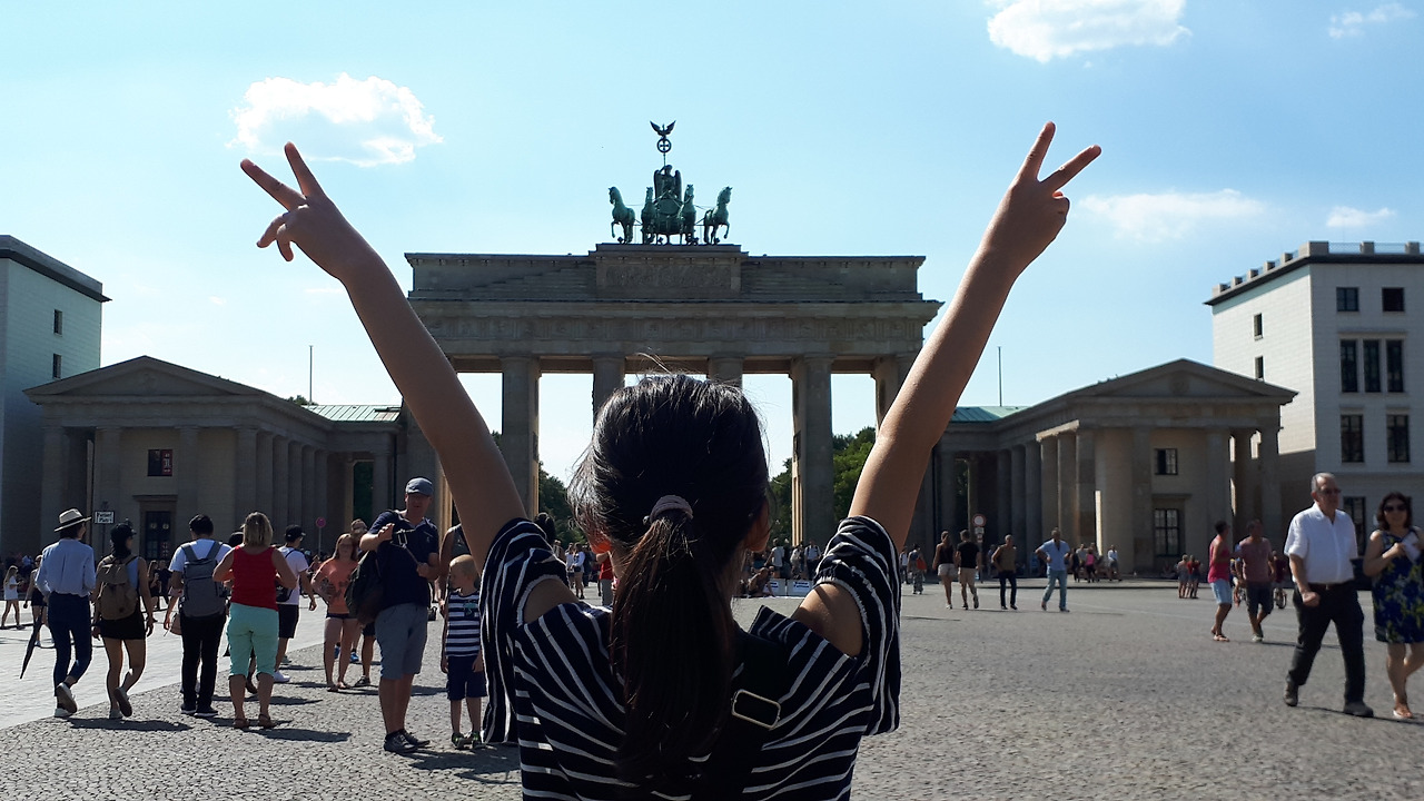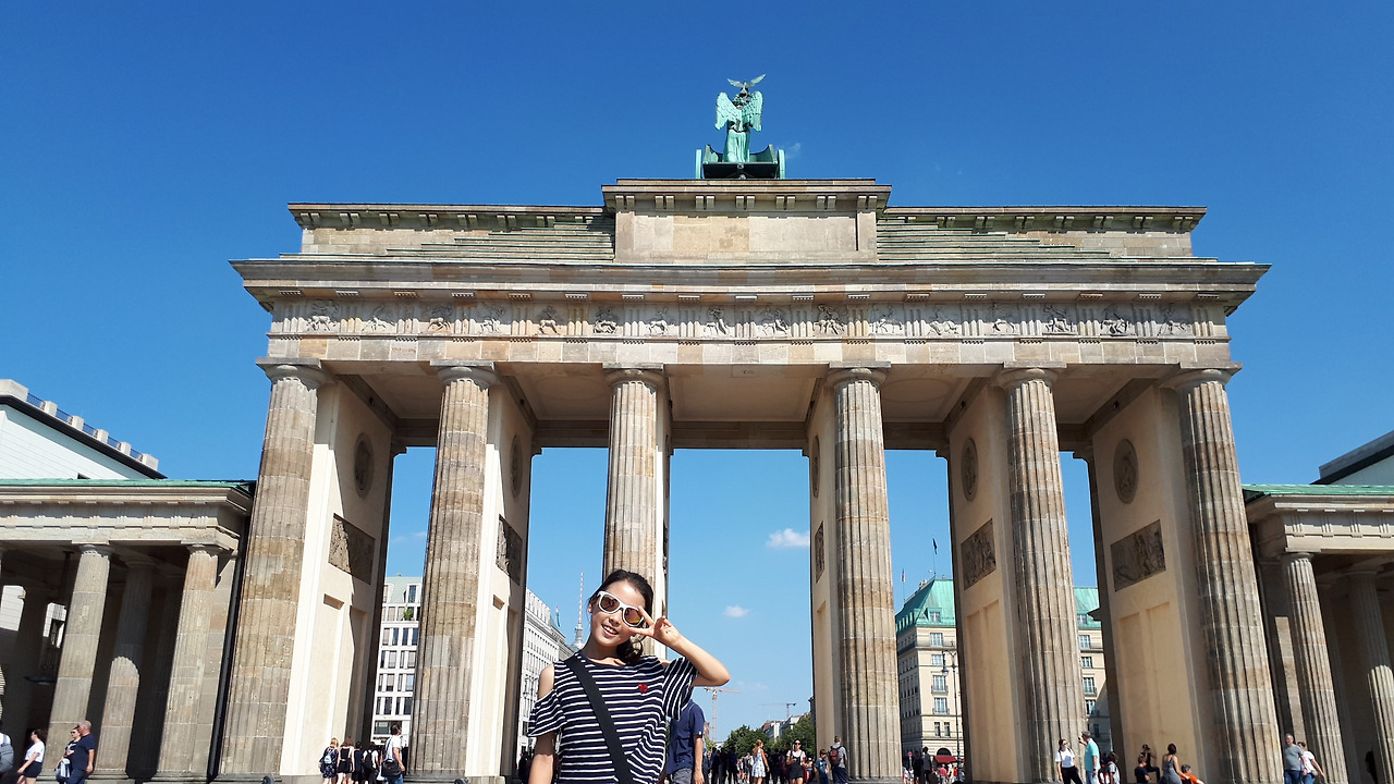 통합과 번영을 상징하는 베를린 브란덴부르크 문 앞에서 인증샷