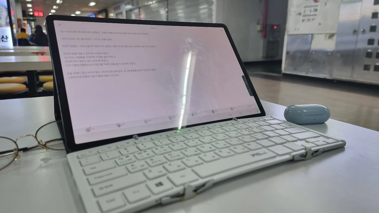 지금 이렇게 태블릿 pc와 키보드를 꺼내어 글을 쓸 수 있게 해 주었다.
