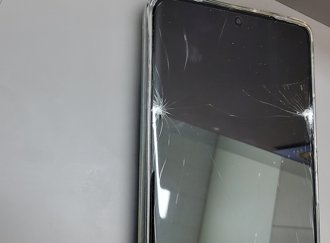 스마트폰 액정이 박살이 나 있었다.
