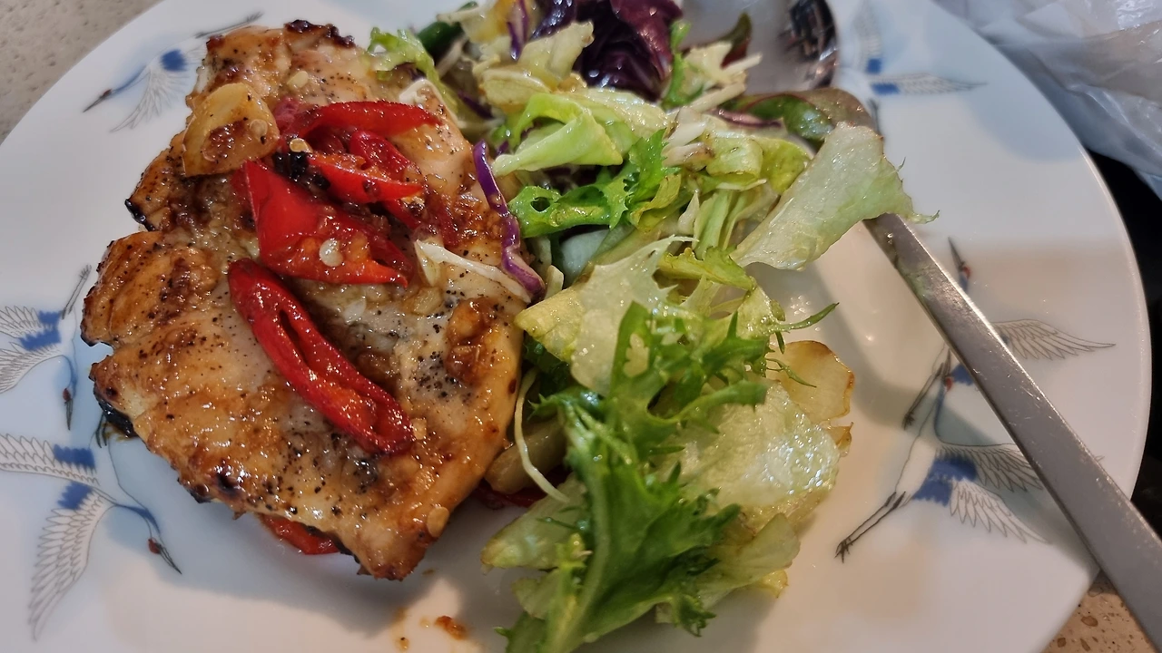 다음날 오후 아내의 퇴근시간에 맞춰 직장에 데리러 갔는데, 아내가 전 날 먹었던 닭가슴살 스테이크가 한 조각 남아있던걸 기억하고는 오늘 저녁으로 먹을 수 있냐고 묻는다. 나는 회심의 미소를 지으며 대답했다.