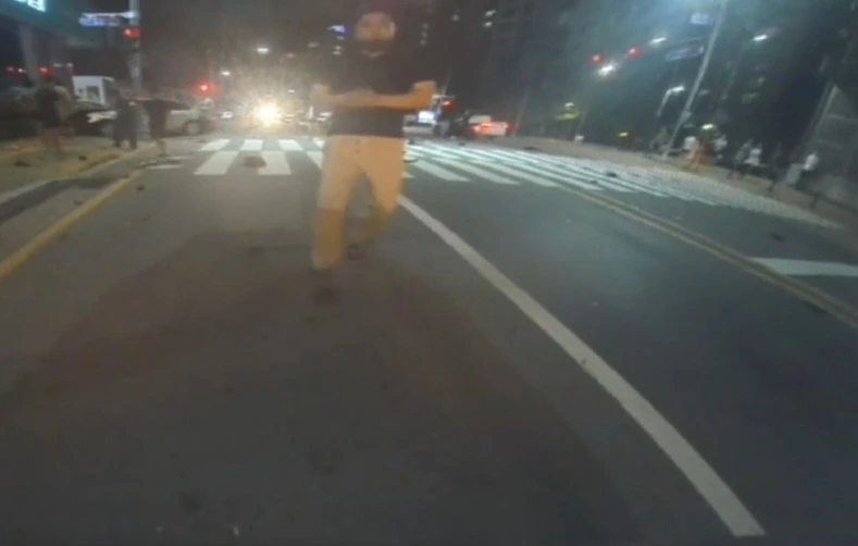 "안 그래도 큰 소리도 나고 사이렌 소리도 들리고, 아까 전화하다가 거기 본 것 같아서 나도 계단에서 봤지"