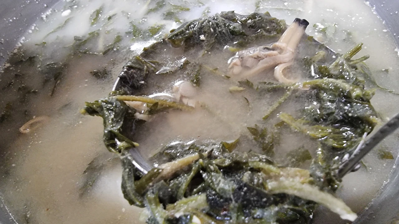 "아 깜빡했다. 깜빡했다. 나 쑥국 좀 가져올게~"
