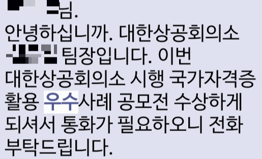 이번에 참여한 공모전은 대한상공회의소에서 주최한 자격증 취득 사례와 관련된 내용이었다. 대한상공회의소에서는 모두가 잘 아는 컴퓨터 관련 자격증(워드, 컴활 등등)에서부터 외국어, 한자, 유통 관련 등 다양한 자격제도를 시행하고 있다. 나는 이 중 컴퓨터활용능력 1급, 2급 그리고 워드프로세서를 취득했는데, 이 자격증 취득 과정과 활용 사례를 간단히 적어 참여하게 된 것이다.