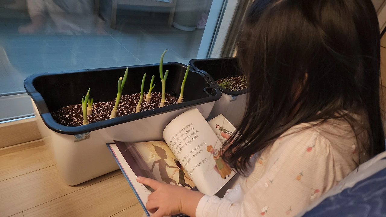 얼마 전 마트에서 장 봐온 대파와 다이소에서 산 토마토, 바질을 심어 놨는데 기적같이 잘 크고 있어 아이와 함께 가꾸고 있는 중이다.