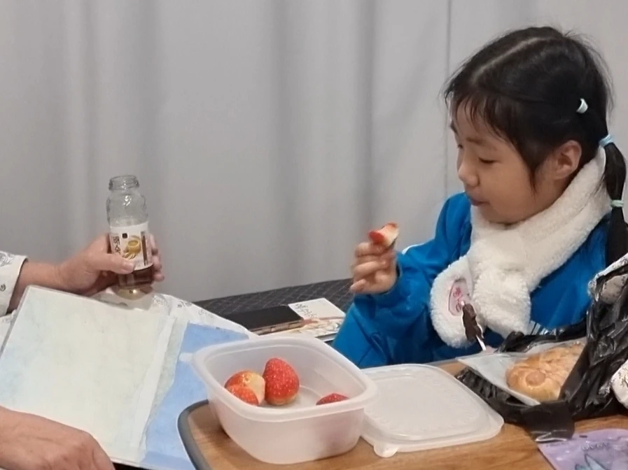 "할머니가 병원에 입원했는데, 딸기 먹고 얼른 나으시라고 히히"