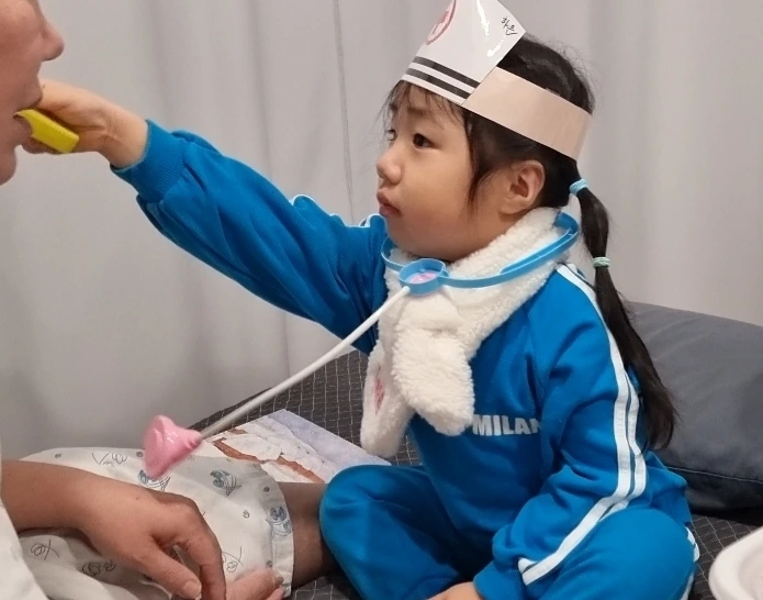 "내가 할머니 빨리 나으라고 치료해 줄 거야"