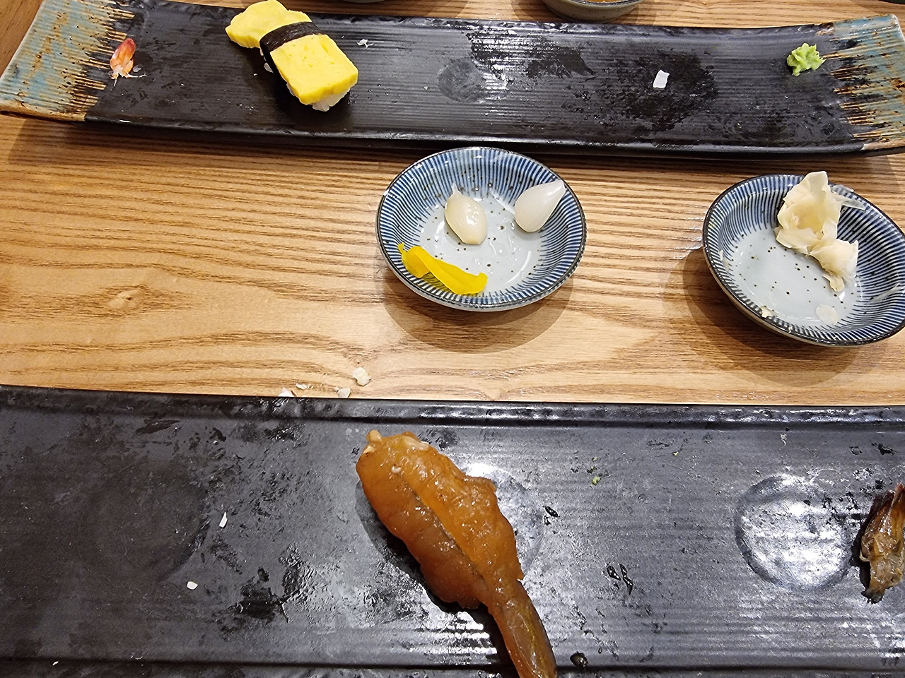 초밥집에 들어섰다. 유일하게 두 사람이 맞는 음식이 있는데 그중 하나가 바로 초밥이다. '초밥 먹으러 갈래?'라는 제안에는 늘 이견이 없었다. 다만 초밥 중에서도 선호하는 초밥이 극명하게 갈렸다. 특히 나는 계란초밥을 싫어하는데 아내는 계란초밥을 좋아한다. 그래서 모둠초밥이 나오면 먹으면서 서로 좋아하는 초밥으로 배달을 해 준다. 그래도 간장새우만큼은 포기하지 못해 아내는 늘 간장새우 한 마리를 양보한다. 난 눈치껏 튀김 종류로 보답한다. 맛있는 것은 늘 마지막까지 생존한다. 아껴먹고 싶어서이다. 오늘도 역시 그랬다...