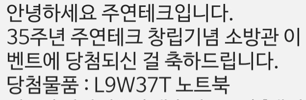 문자 한 통이 도착했다. '안녕하세요. 주연테크 입니...'까지만 보였다. 심장이 두근 거린다.