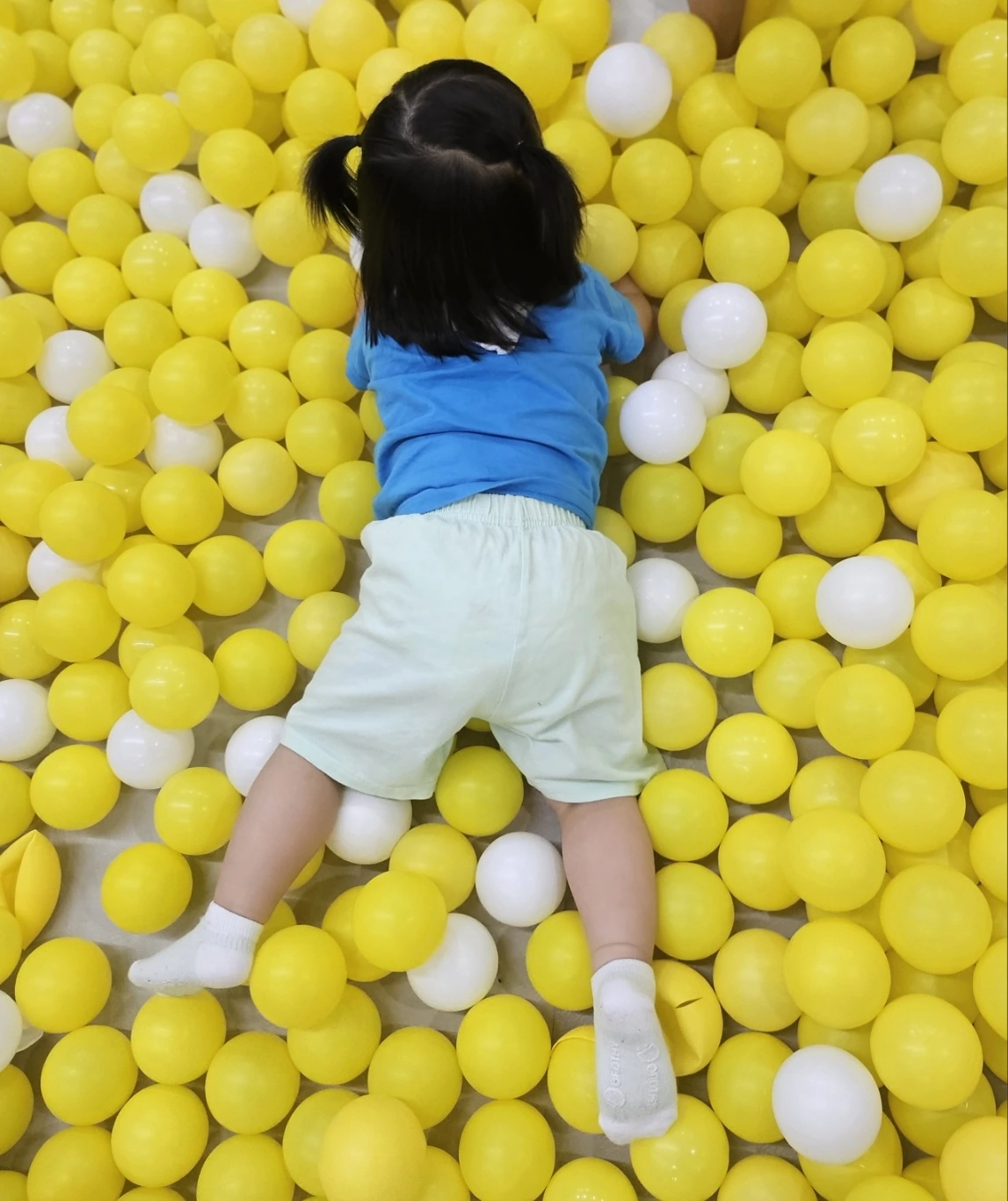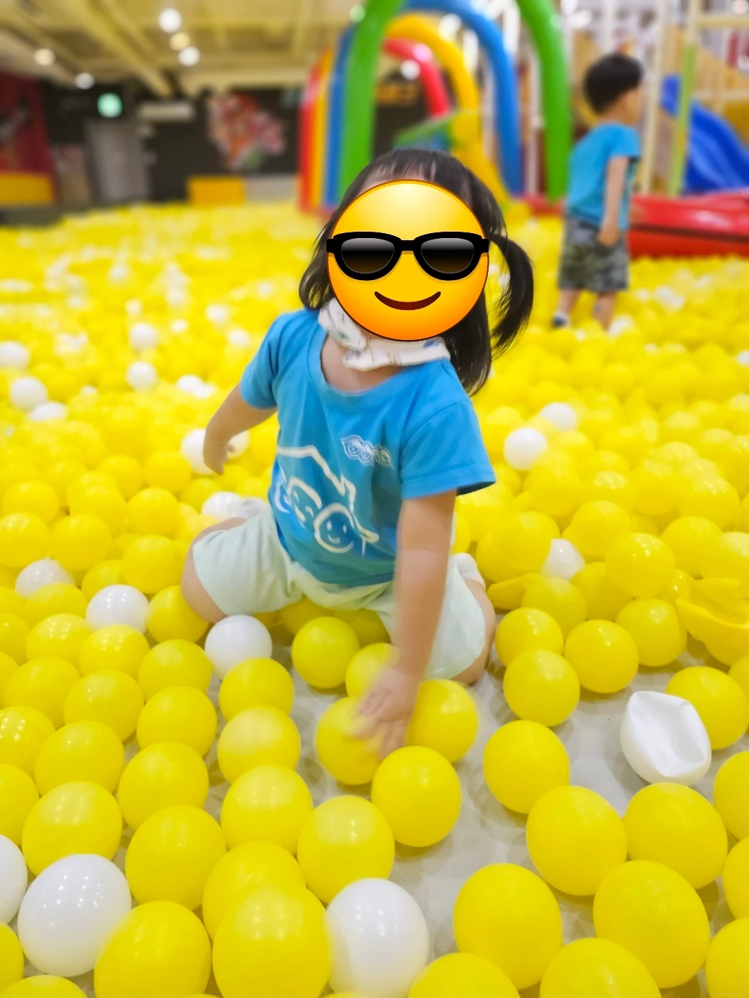 트램펄린이며, 볼풀 공, 귀여운 동물까지, 어디서부터 놀아야 될지 모르겠다. 모든 것이 신기하기만 하다. 요즘 아기상어에 푹 빠져 있는데, 공들도 온통 아기(상어) 색깔뿐이다.