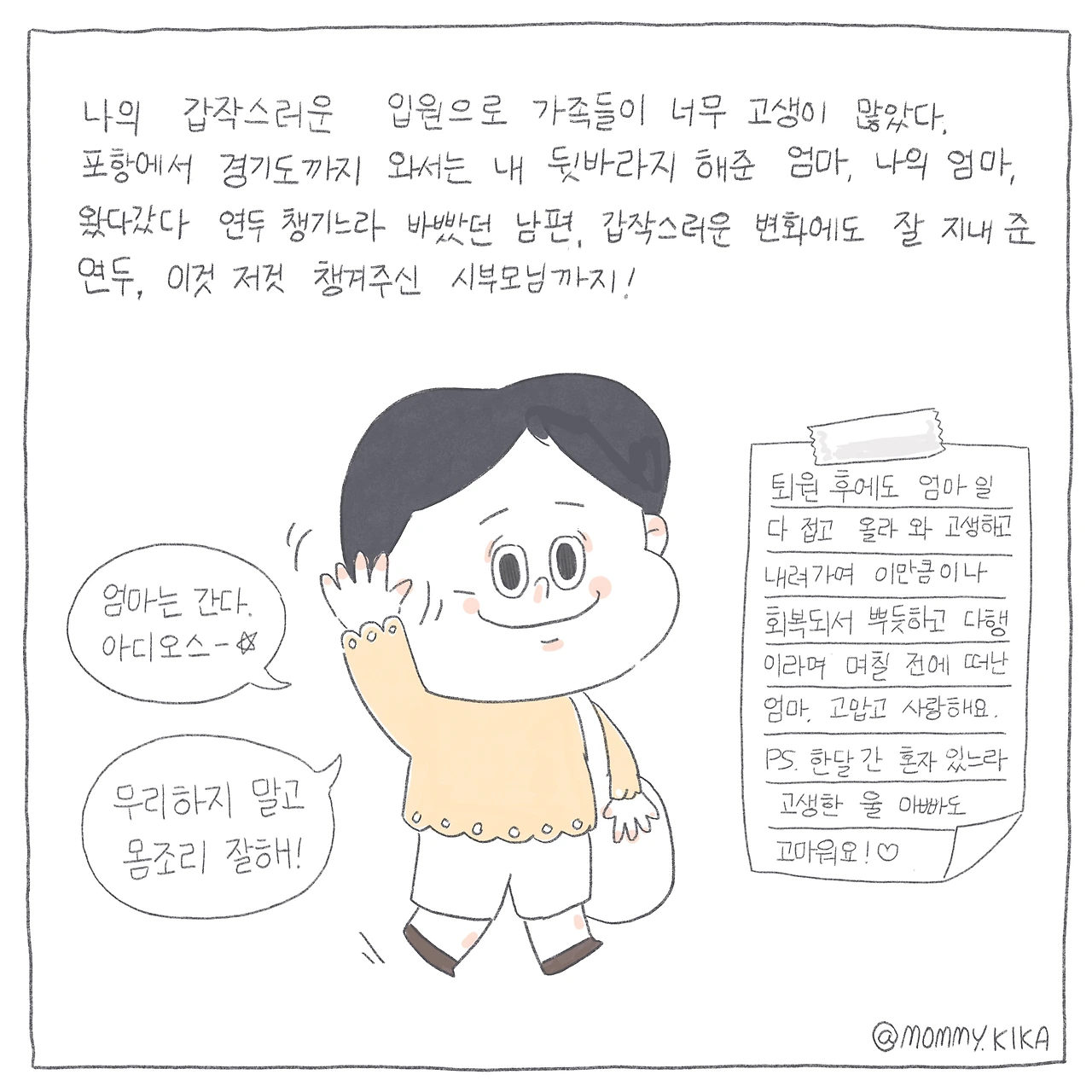 아기는 생각보다 강했고, 우리의 몸도 생각보다 위대했다. 다행히, 다행히 모두가 정상으로 돌아왔다. 배 속에 아기는 입원 내내부터 아주 건강히 잘 크고 있다. 곧 20주, 초음파 보러 가야 한다. 그때까지 우리 잘 지내다가 만나자 아가야. 사랑해.