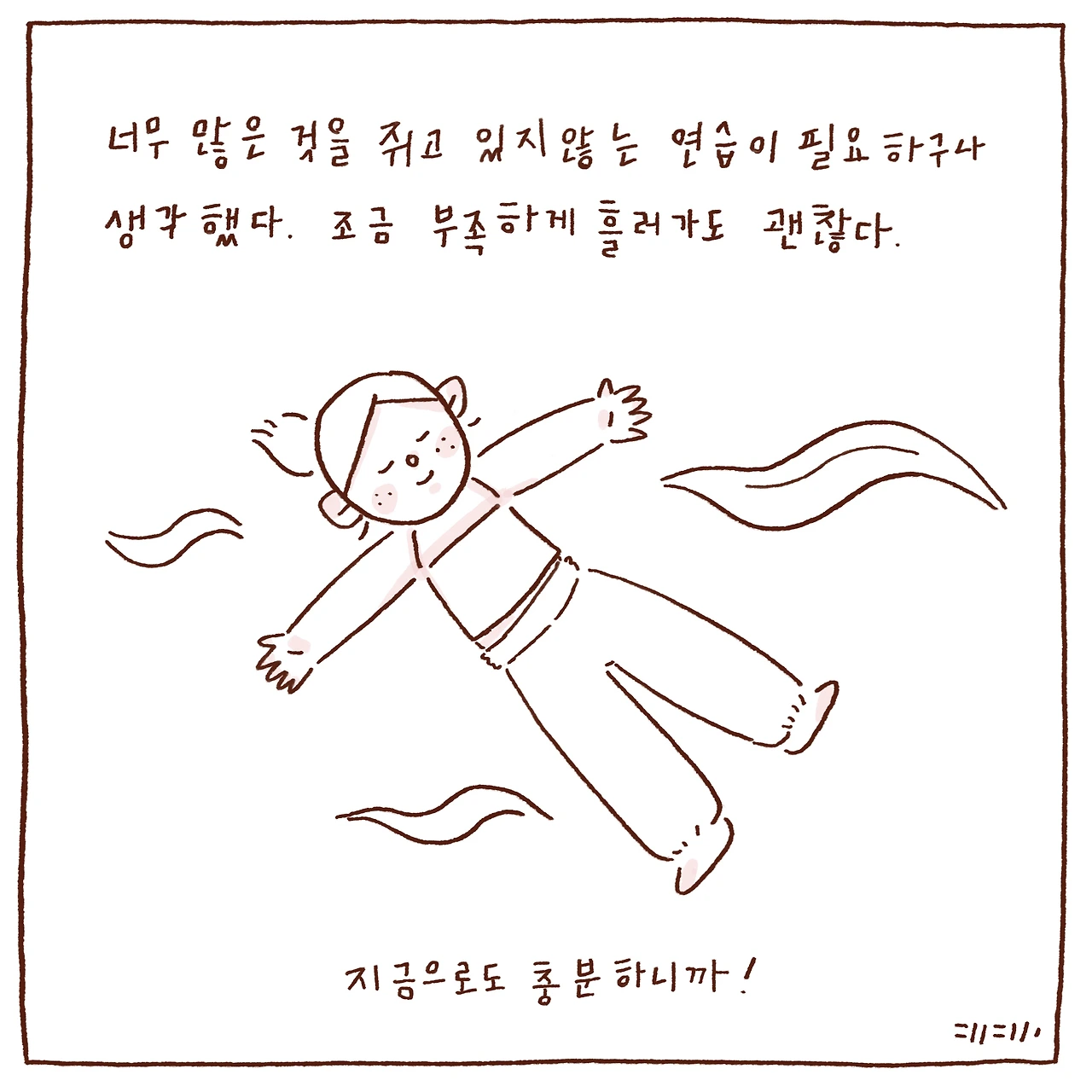 앞으로 스스로 좀 편하게 살기 위해서는 지금부터라도 ‘이 정도면 괜찮아! 충분해!’하는 연습을 해보자.