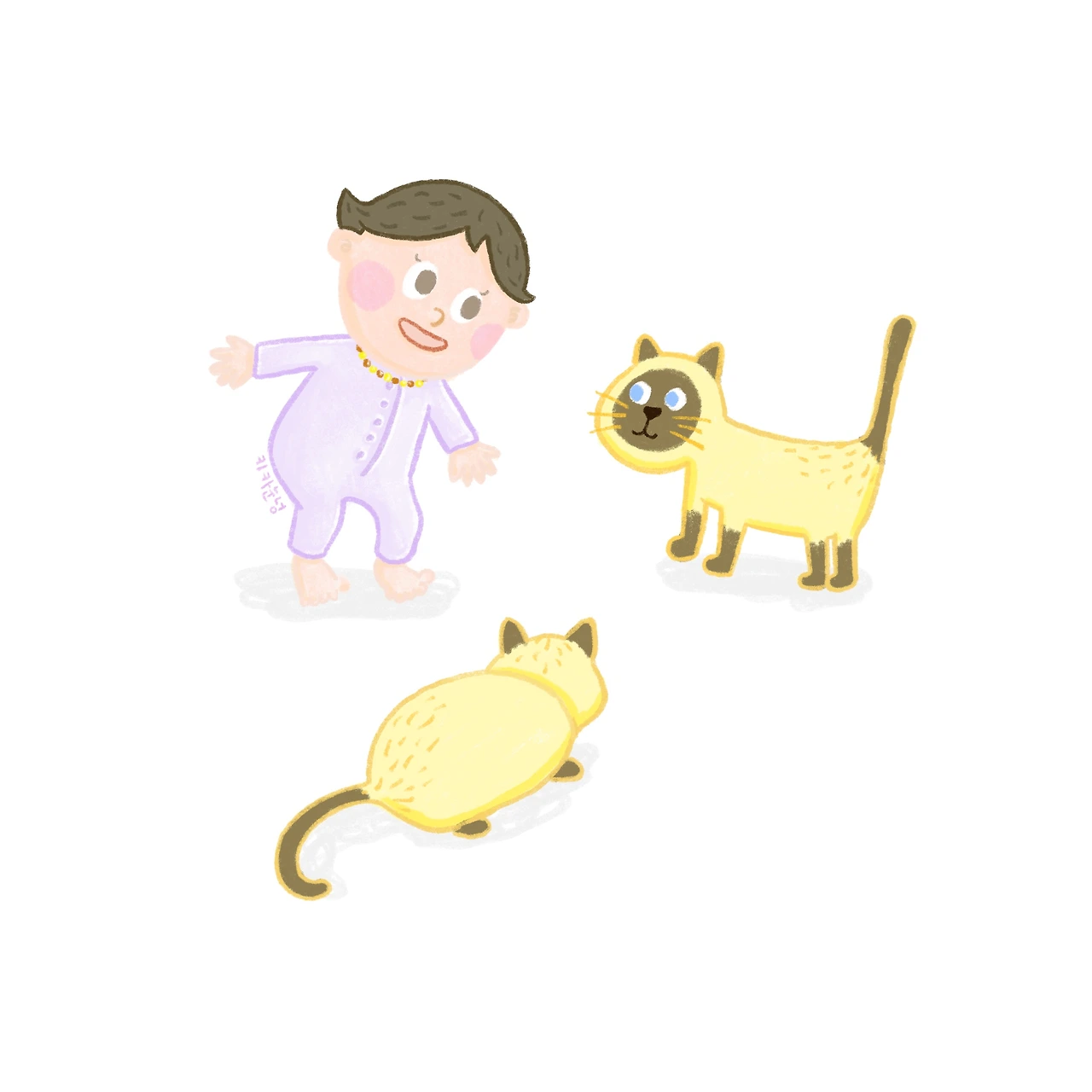 나는 생후 14개월이 된 여자 아기 사람 한 명이랑, 어느새 노묘가 되어가고 있는 샴고양이 두 마리를 키운다. 아, 물론 벽에 걸린 식물들을 포함한 네 개의 화분도 키운다.