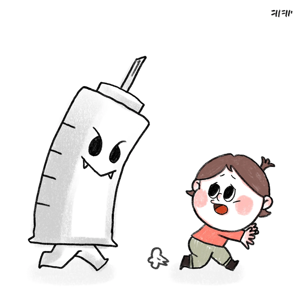 의사선생님 얼굴만 봐도 울기 시작, 주사를 맞고 나오니 울음이 뚝 그친다.