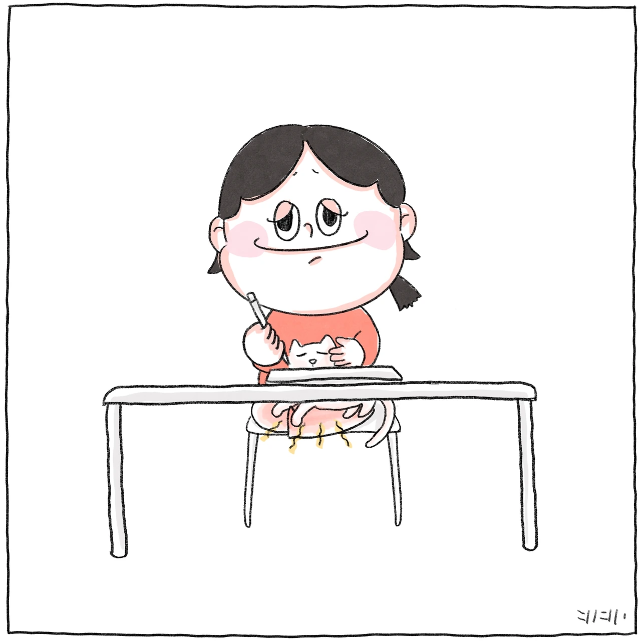 그림 그리려 자리에 앉으니 원피스 입어 맨다리가 휭~