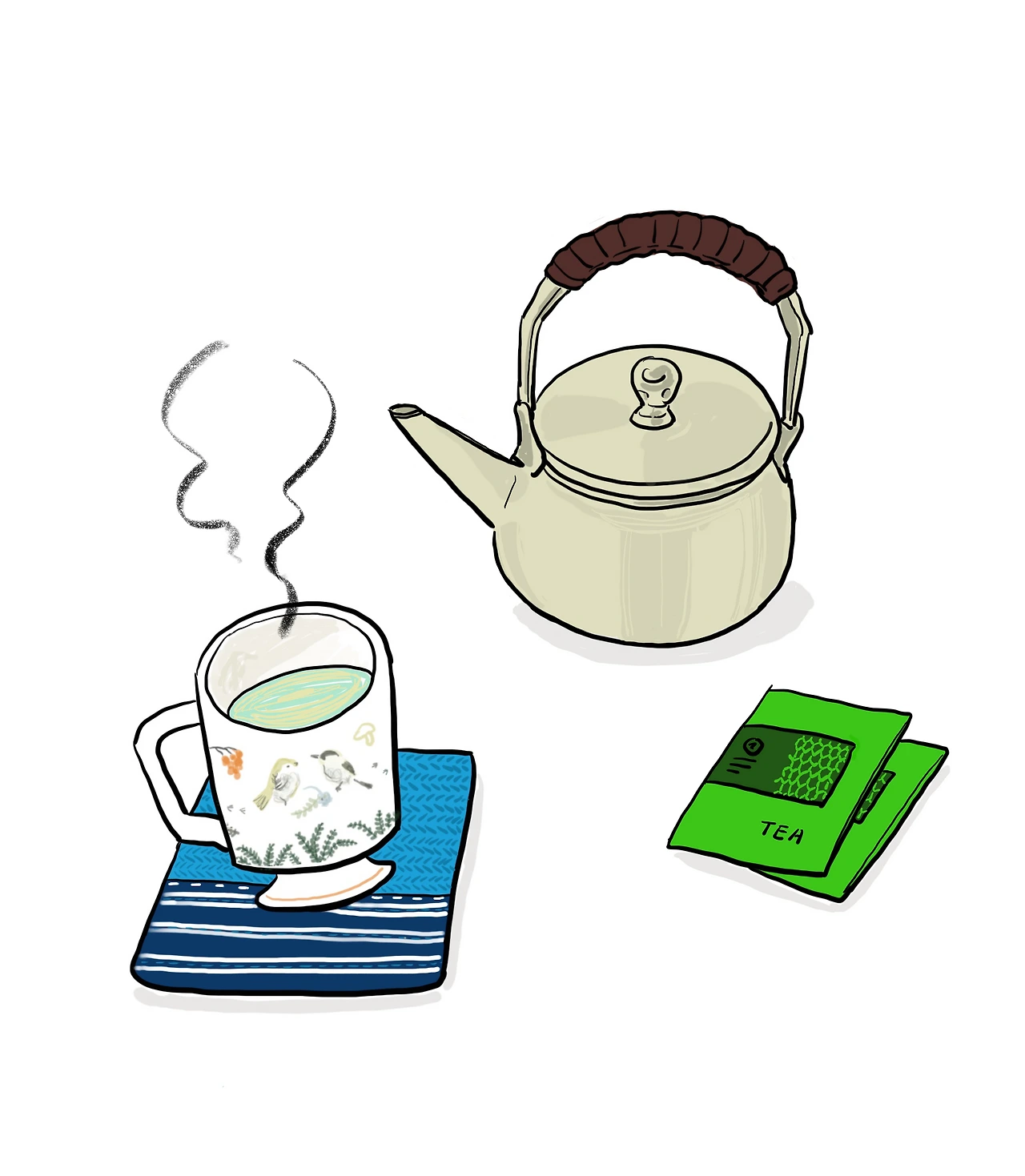 새가 그려진 찻잔이었다.