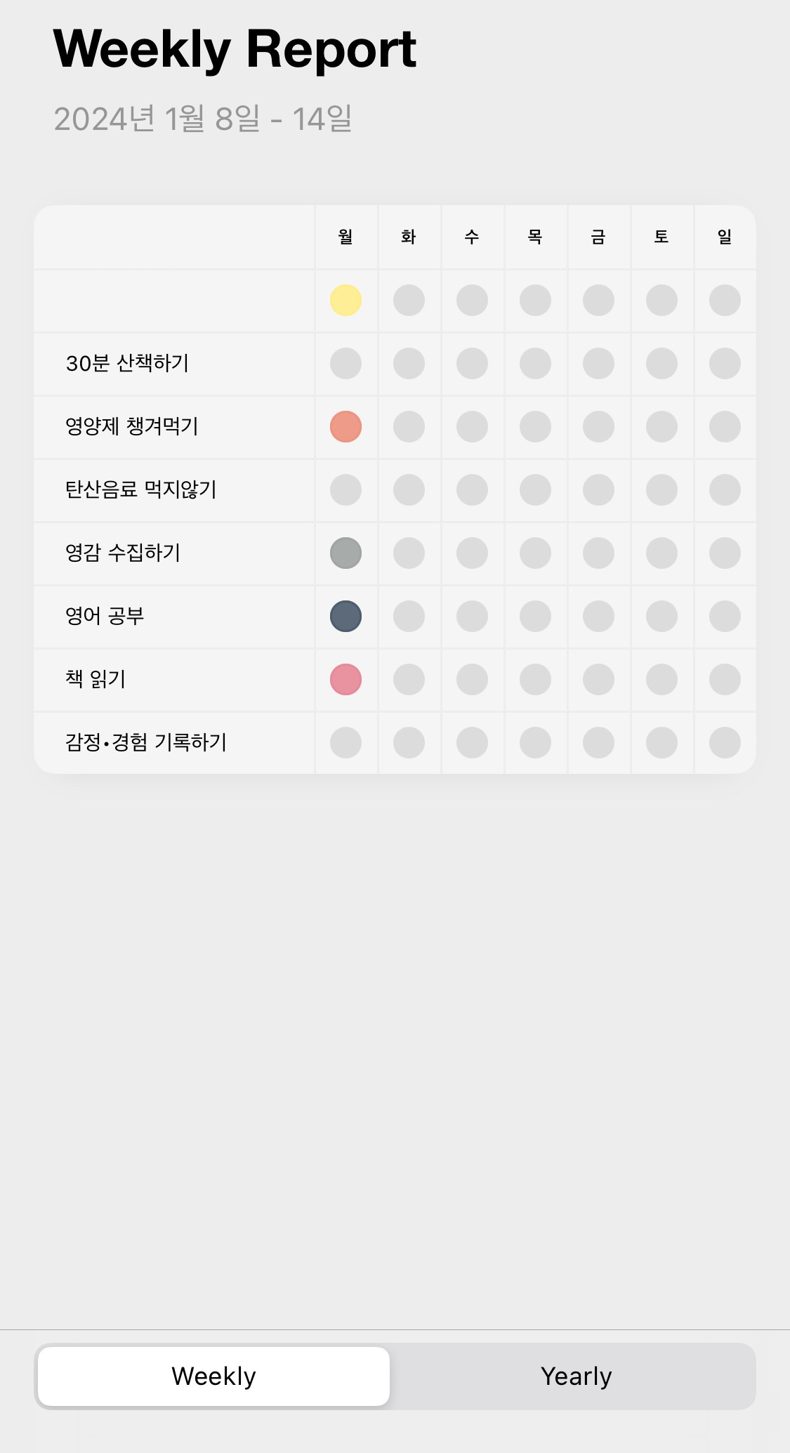 루틴화 해야 되는 목표는 보통 습관 목표다. 매일 영양제 먹기, 매일 영어 공부하기, 매일 아티클 읽기와 같이 ‘매일 ~하기’로 설정했던 목표다. 지금 당장 시도할 루틴과 나중에 추가할 루틴으로 나눈 후에 Daystamp로 따로 관리한다.