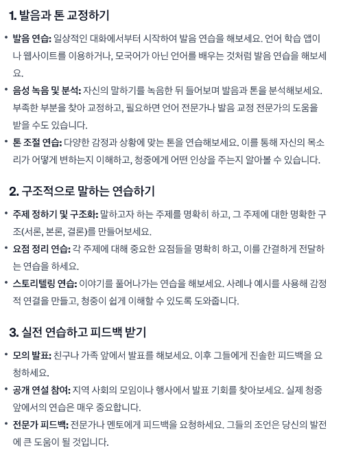 말하는 연습하기: 발음과 톤 교정하기, 구조적으로 말하는 연습하기, 실전 연습하고 피드백받기