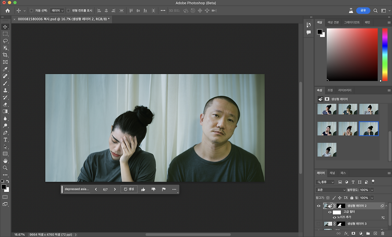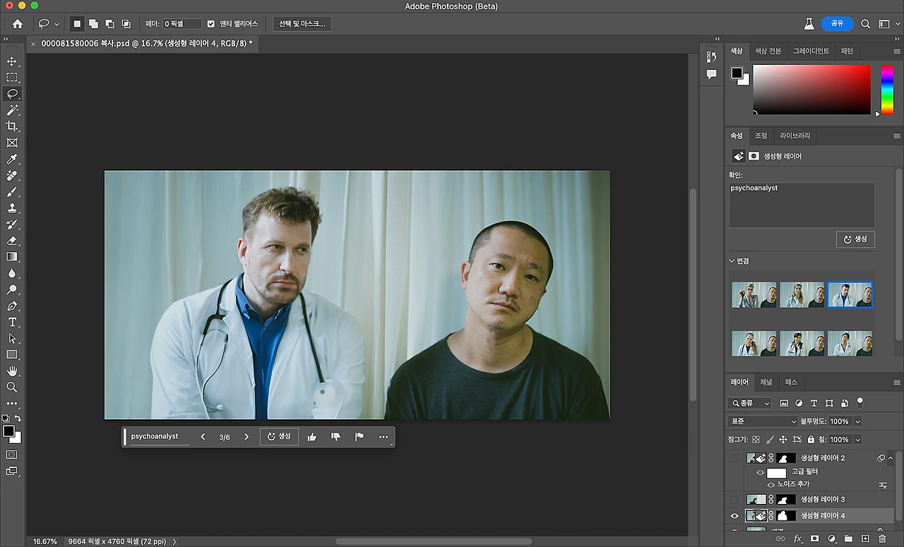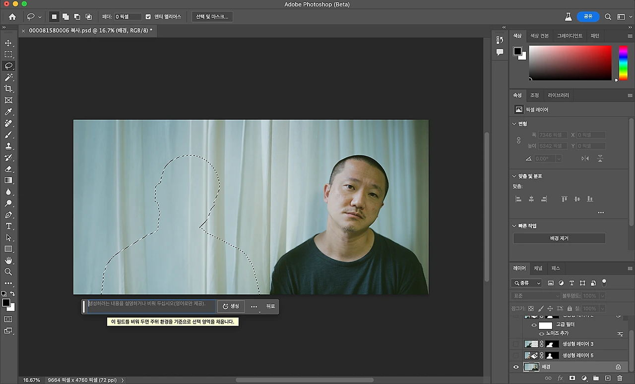 포토샵 베타의 AI 생성 기능을 써봤습니다.