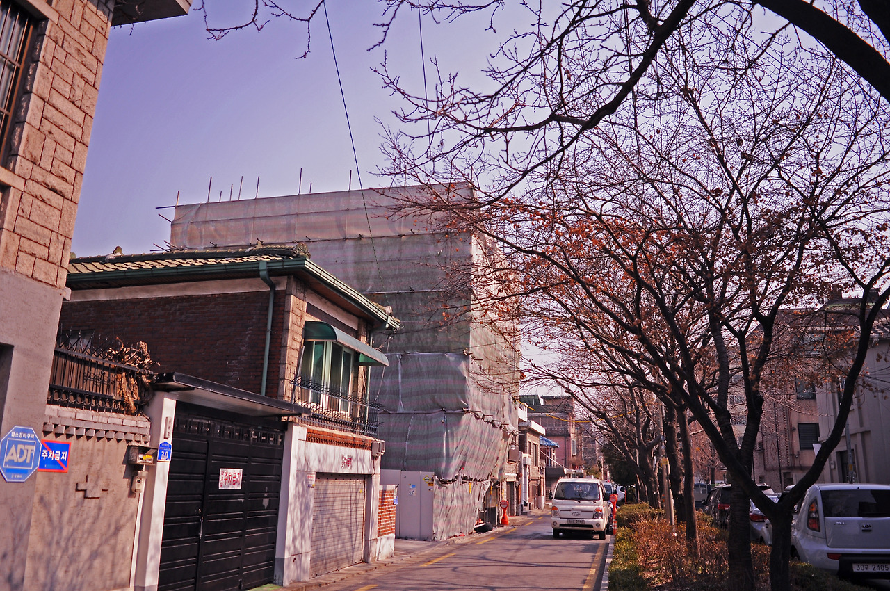 몇 달 후 아내와 함께 그 길을 구경하러 간 내가 물었다. 아내가 말을 했던 것만큼 그렇게 좋아 보이지는 않았다. 도로의 중앙 분리대가 화단으로 되어있고 나무들이 줄지어 있어서 여느 골목길과는 다른 풍경이었지만, 화단에 재활용품들이 쌓여있어 지저분했고, 겨울을 맞이한 앙상한 나무들이 처량해 보였기 때문이다.
